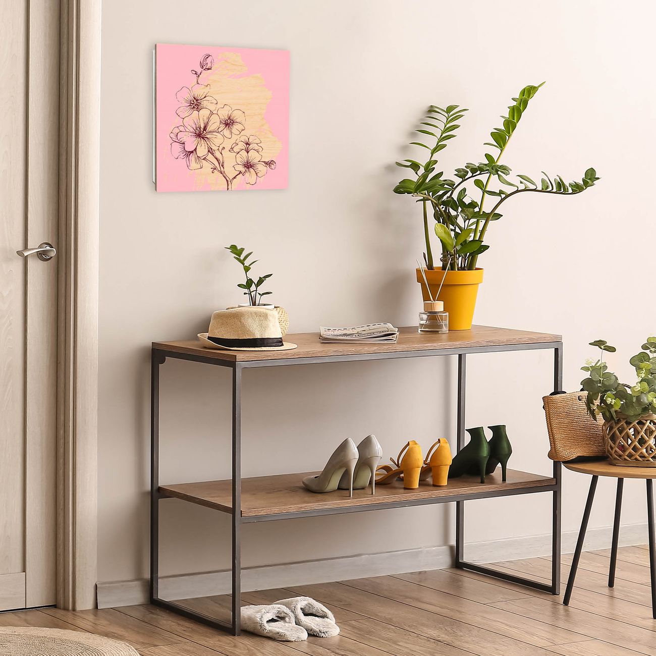 Bringe Ordnung und Eleganz in deinen Eingangsbereich mit dem banjado Schlüsselkasten Motiv Motiv Blütenpracht. Die moderne Schlüsselbox kombiniert funktionales Design mit hochwertiger Verarbeitung und wird so zu einem echten Hingucker in Flur, Büro oder Ferienwohnung. ✅ Stilvolle Schlüsselaufbewahrung mit moderner Holzfront im Motiv Motiv Blütenpracht Der Design-Schlüsselkasten Motiv Motiv Blütenpracht bietet Platz für bis zu 50 Schlüssel, die auf 5 stabilen Reihen mit je 10 Haken übersichtlich verstaut werden. Mit seinen kompakten Maßen von 30 x 30 x 5 cm passt die Schlüsselbox perfekt auch in kleinere Räume. Der weiß lackierte Korpus mit dem Scharnier auf der linken Seite harmoniert mit der bedruckten Holzfront und fügt sich nahtlos in jedes Wohnambiente ein. Ob als Schlüsselorganizer für Zuhause oder als praktische Lösung für Büros, Praxen und Gewerbe - der banjado Schlüsselkasten sorgt für Ordnung und Übersicht. Durch die klare Strukturierung der Haken lassen sich auch viele Schlüssel problemlos verwalten. Die Schlüsselbox Motiv Motiv Blütenpracht zur Wandmontage wird inklusive Befestigungsmaterial geliefert und ist schnell angebracht. So hast du deine Schlüssel jederzeit griffbereit und zugleich stilvoll verstaut. Mit diesem banjado Schlüsselkasten Motiv Motiv Blütenpracht kombinierst du praktische Aufbewahrung mit stilvollem Wohndesign. Ob privat oder geschäftlich - die Schlüsselbox sorgt für mehr Ordnung, Übersicht und ein wohnliches Ambiente.Vorteile im Überblick