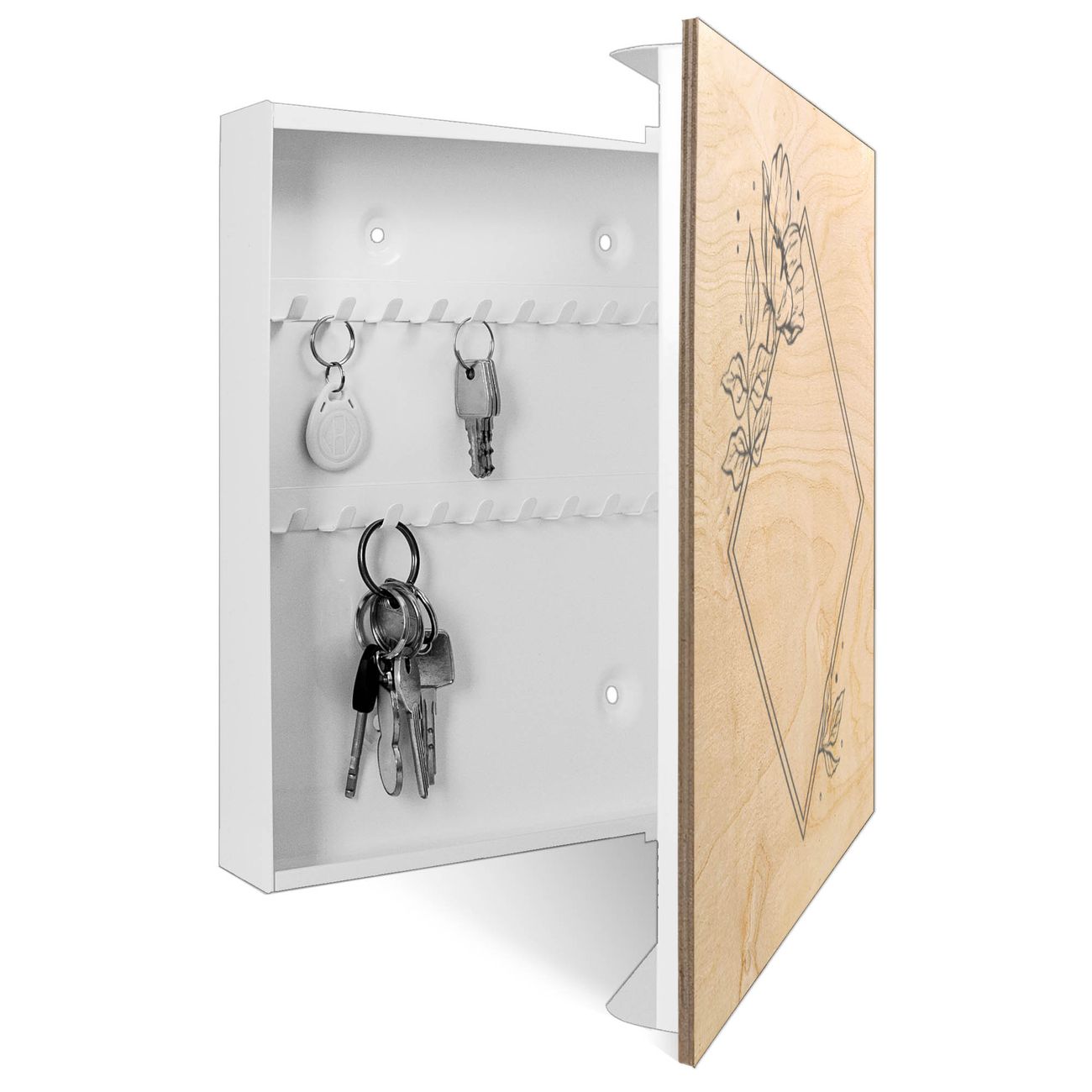 Schlüsselkasten mit Holzfront - Design Schlüsselbox Motiv Blütenrahmen
