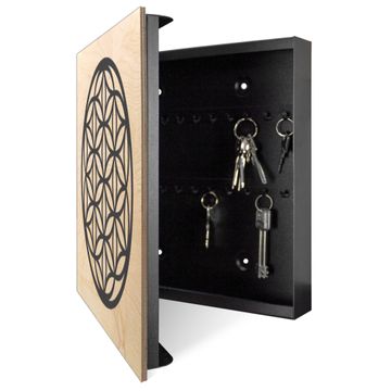Schlüsselkasten mit Holzfront - Design Schlüsselbox Motiv Blume des Lebens Muster