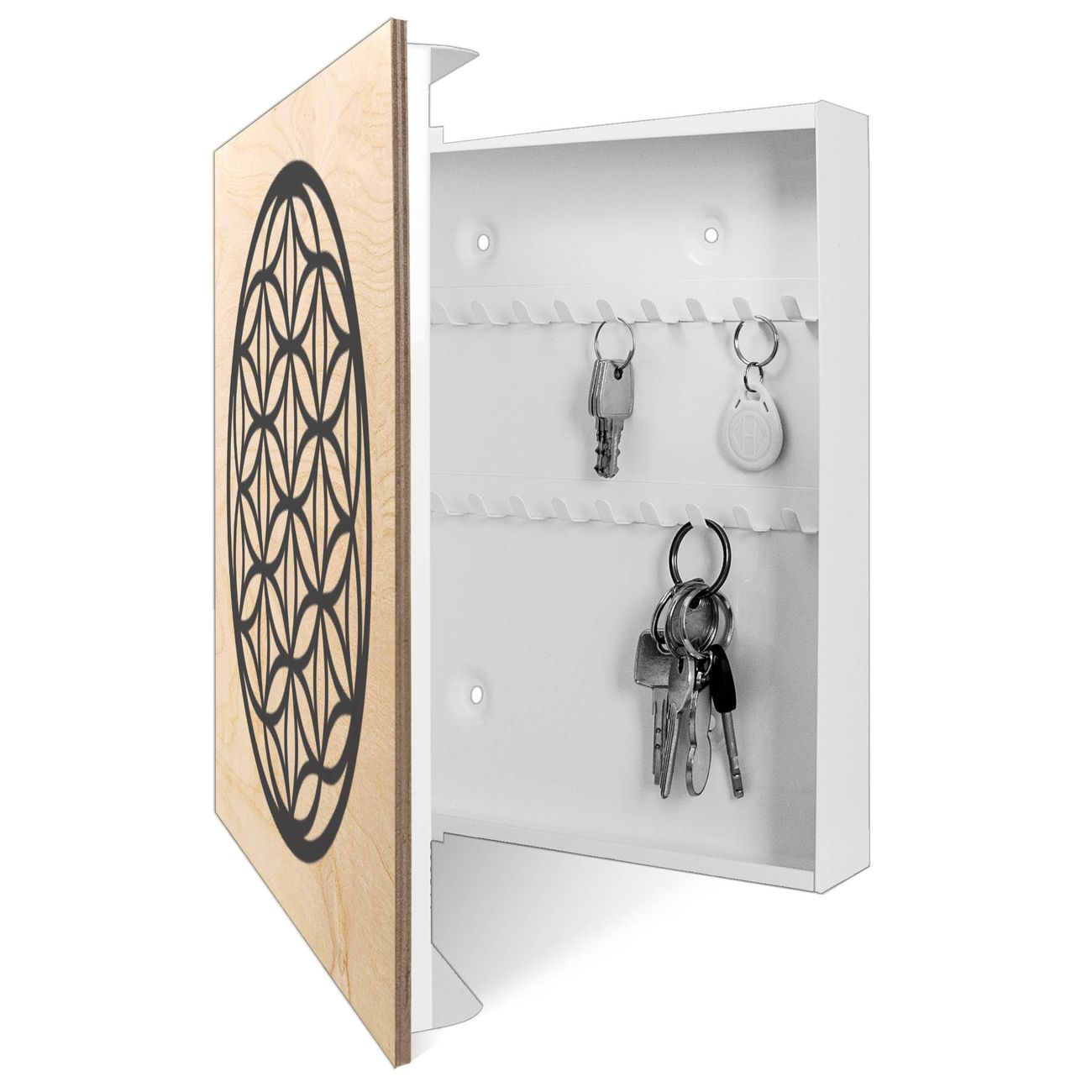 Schlüsselkasten mit Holzfront - Design Schlüsselbox Motiv Blume des Lebens Muster