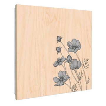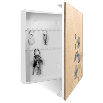 Schlüsselkasten mit Holzfront - Design Schlüsselbox Motiv Blumen in Schwarz-Weiß