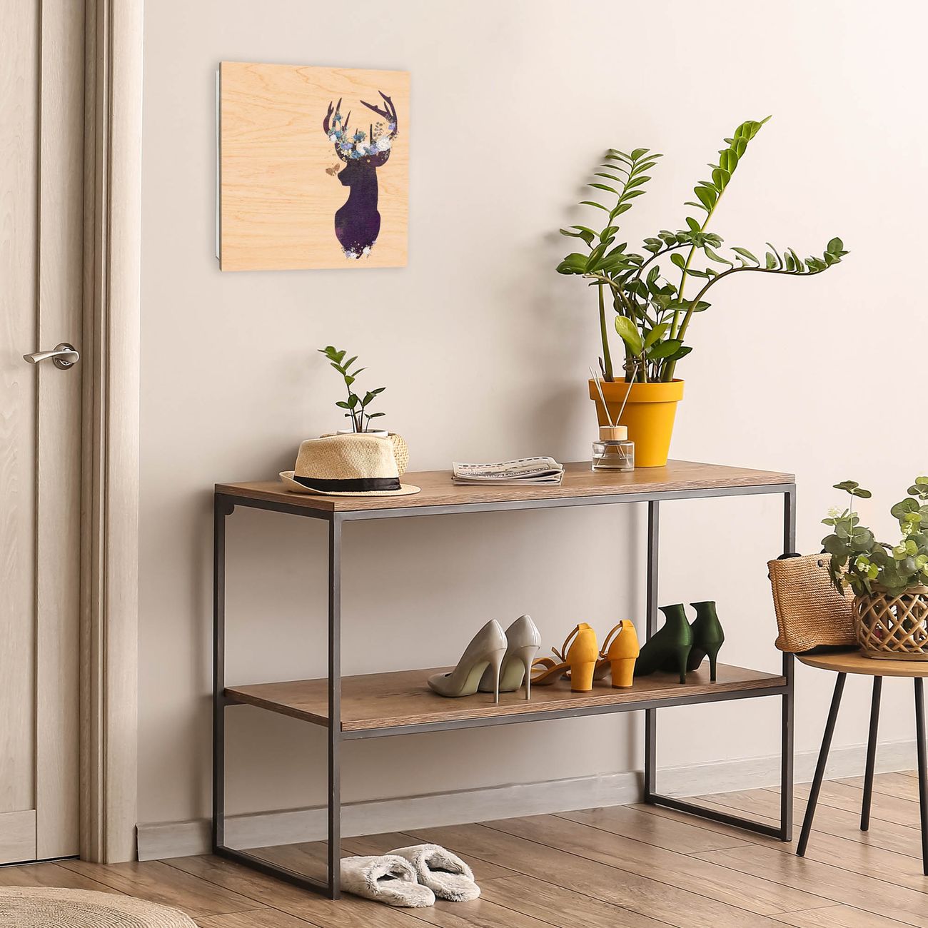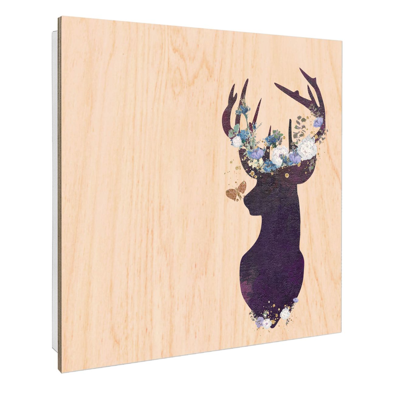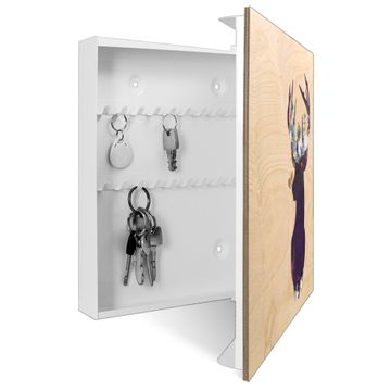 Schlüsselkasten mit Holzfront - Design Schlüsselbox Motiv Blumengeweih-Hirsch