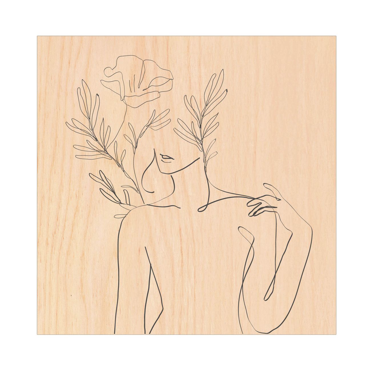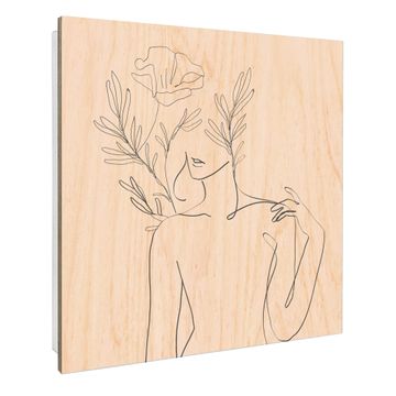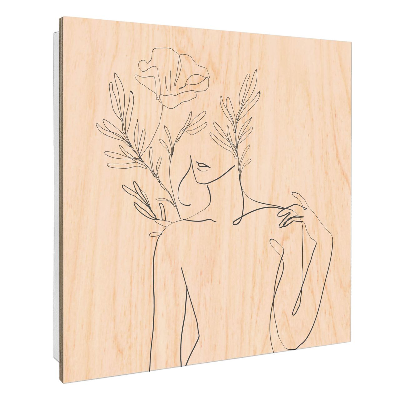 Schlüsselkasten mit Holzfront - Design Schlüsselbox Motiv Blumenlinie