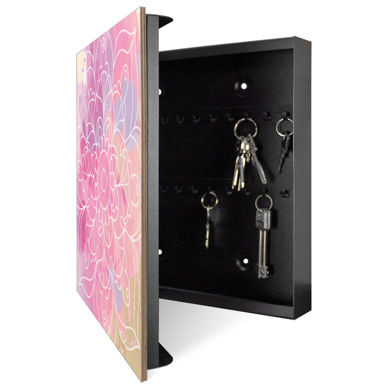 Schlüsselkasten mit Holzfront - Design Schlüsselbox Motiv Blumenmandala
