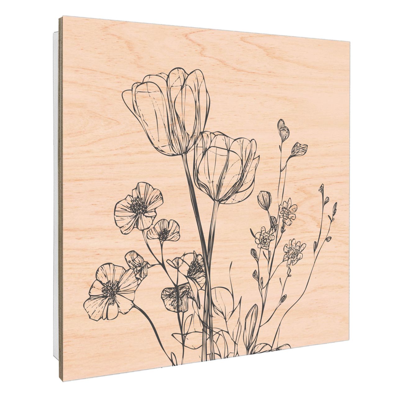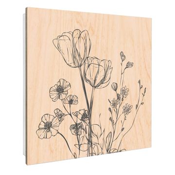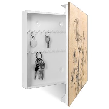Schlüsselkasten mit Holzfront - Design Schlüsselbox Motiv Blumenskizze