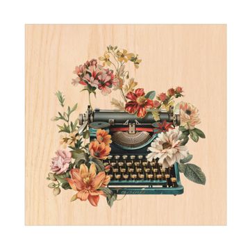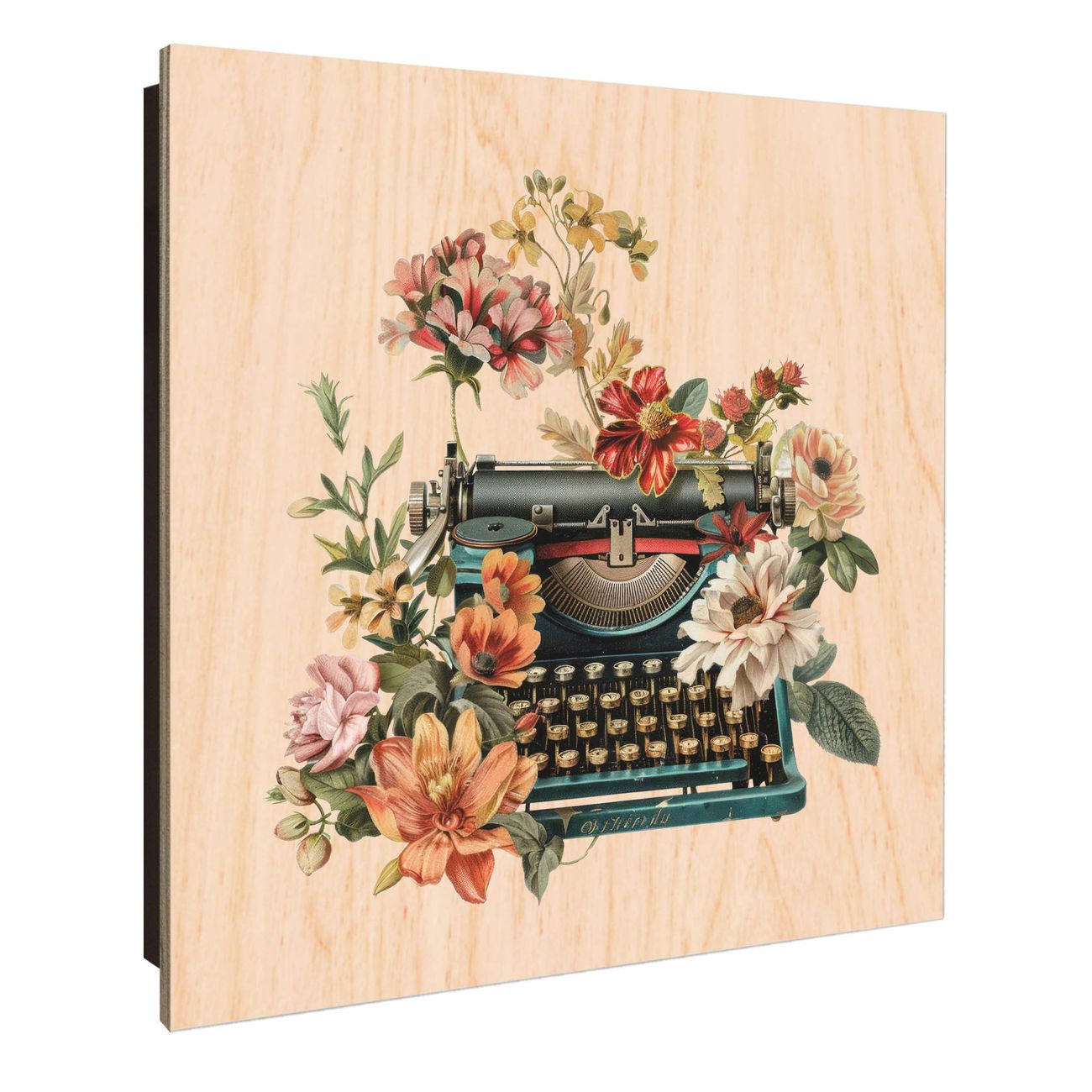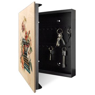 Schlüsselkasten mit Holzfront - Design Schlüsselbox Motiv Blumige Schreibmaschine