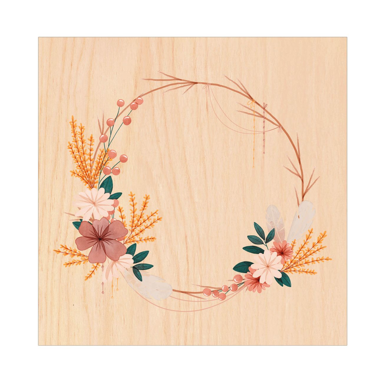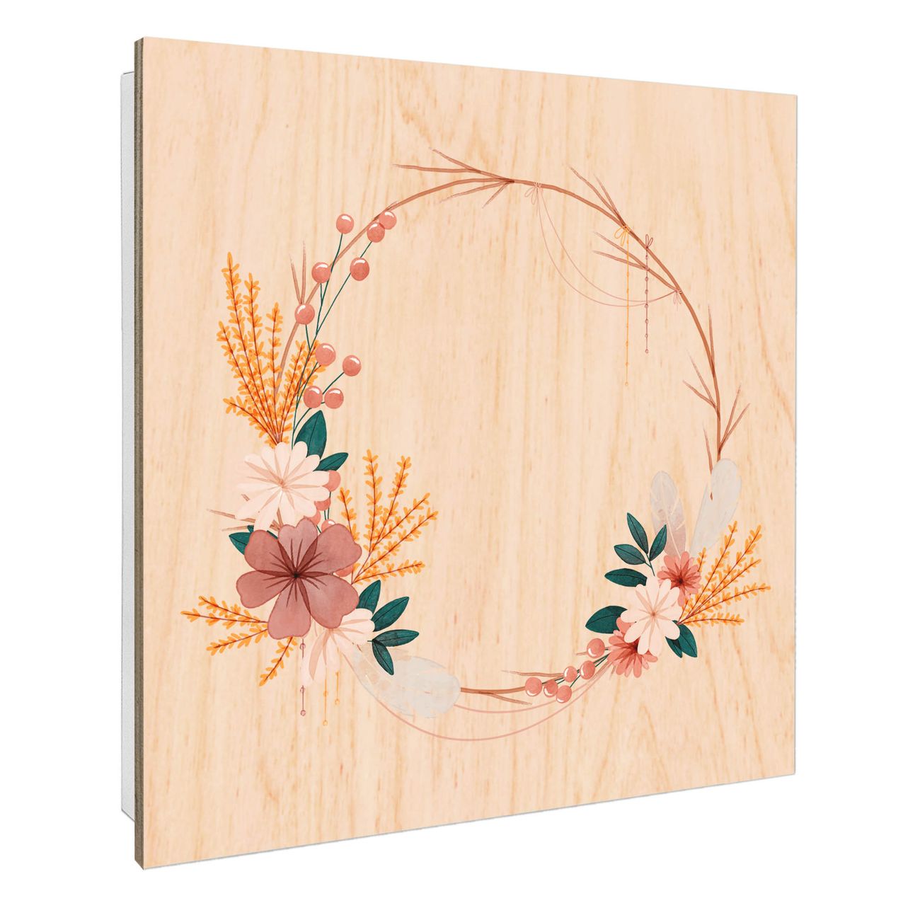 Schlüsselkasten mit Holzfront - Design Schlüsselbox Motiv Blumiger Kranz