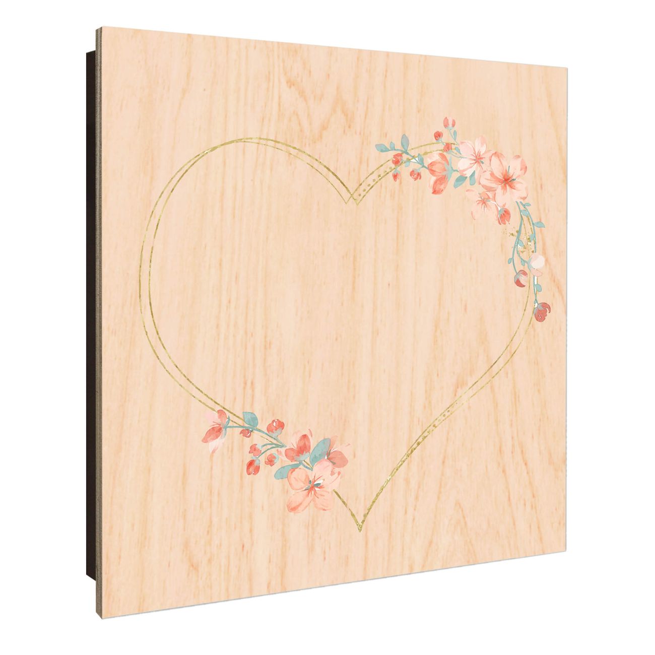 Schlüsselkasten mit Holzfront - Design Schlüsselbox Motiv Blumiges Herz