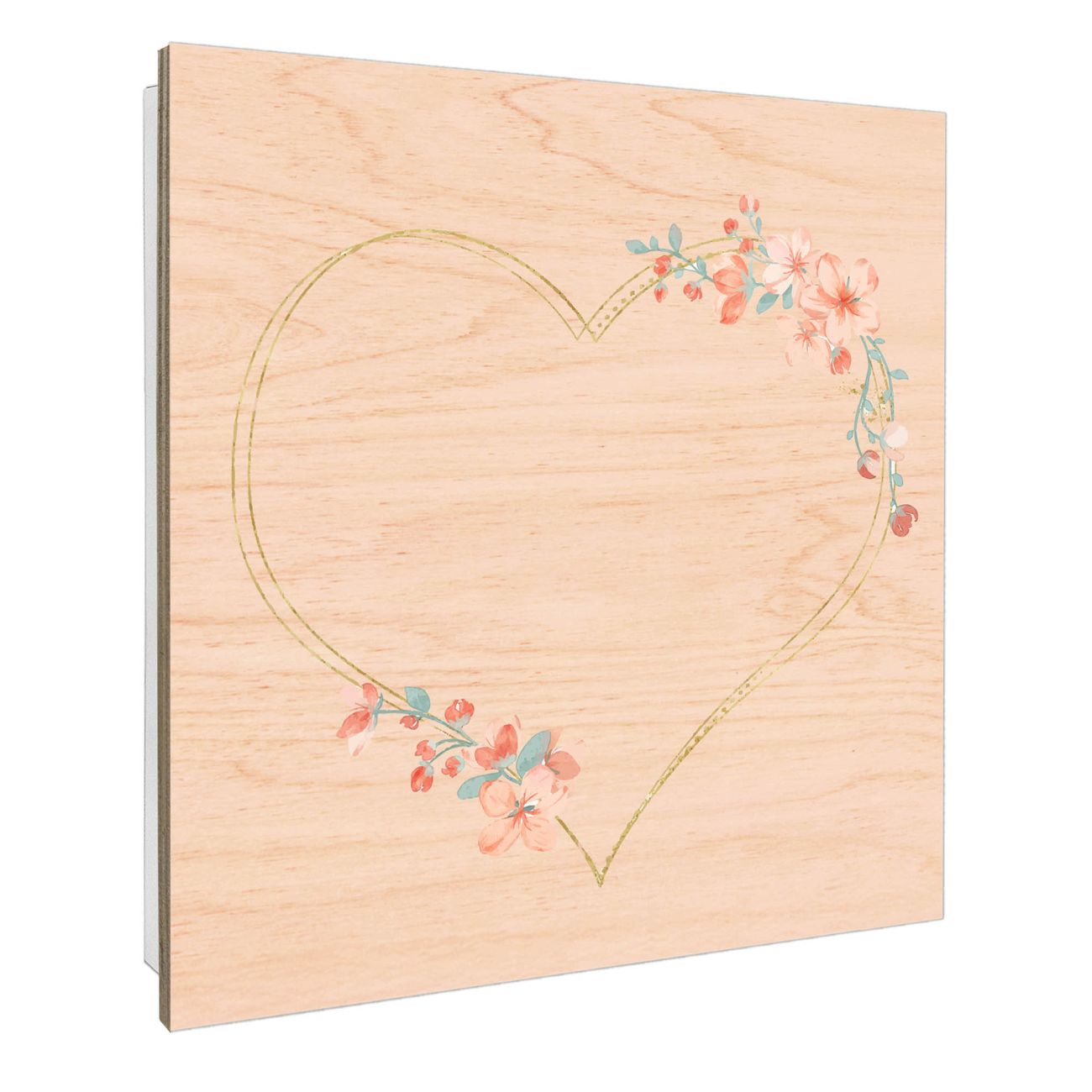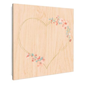 Schlüsselkasten mit Holzfront - Design Schlüsselbox Motiv Blumiges Herz