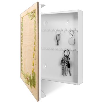 Schlüsselkasten mit Holzfront - Design Schlüsselbox Motiv Botanischer Rahmen 2