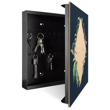 Schlüsselkasten mit Holzfront - Design Schlüsselbox Motiv Botanischer Rahmen