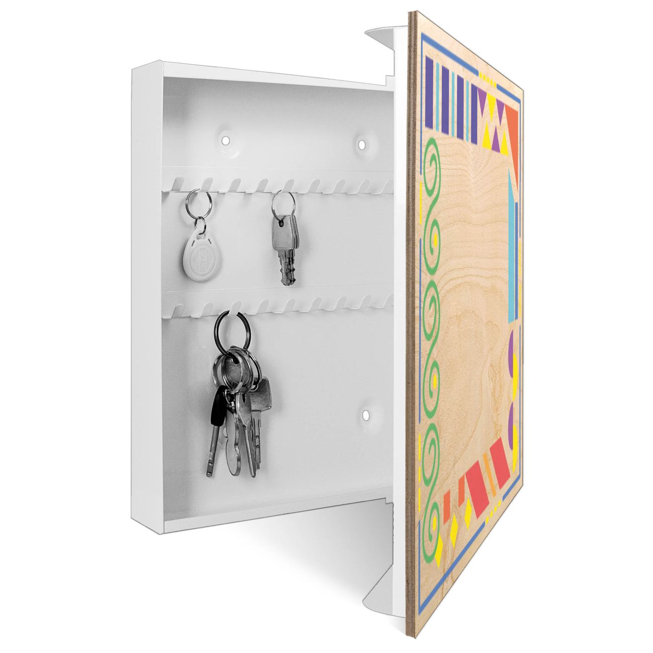 Schlüsselkasten mit Holzfront - Design Schlüsselbox Motiv Bunte Ecken