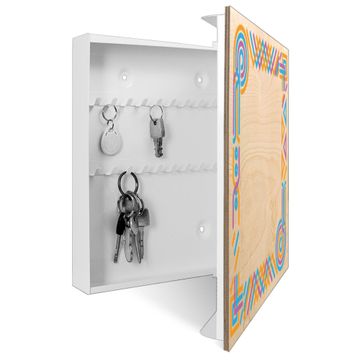 Schlüsselkasten mit Holzfront - Design Schlüsselbox Motiv Bunte Eckverzierung