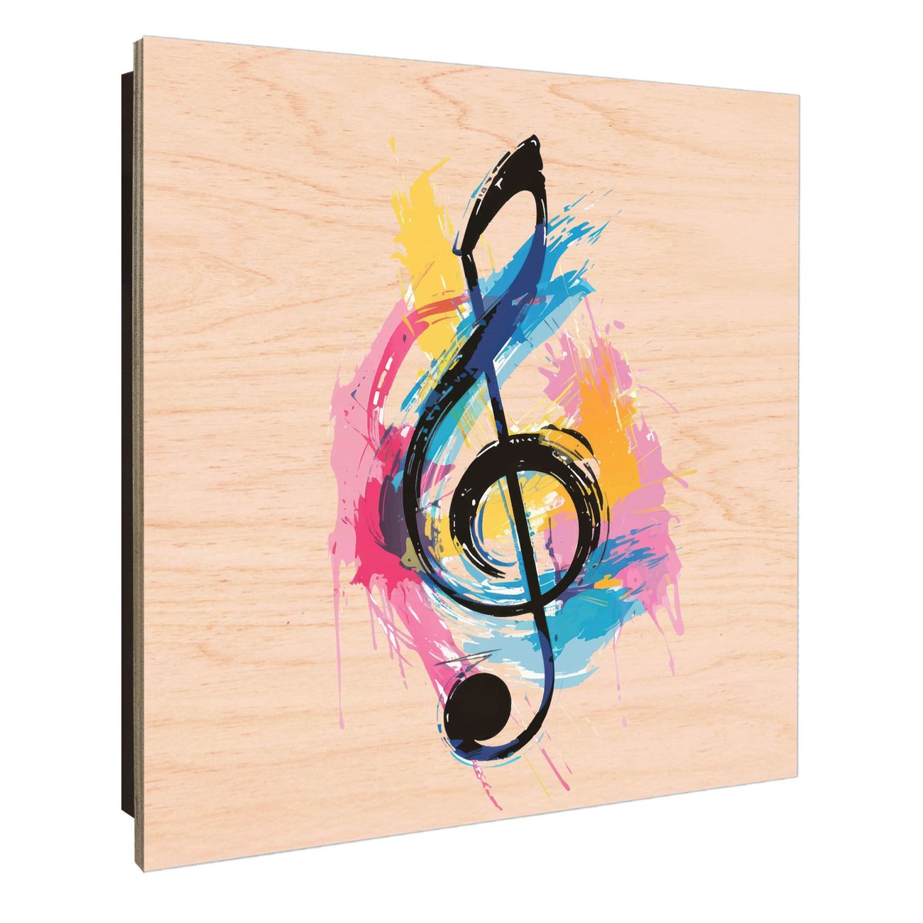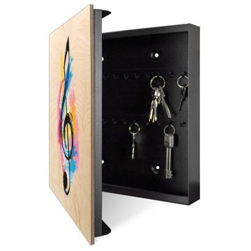 Schlüsselkasten mit Holzfront - Design Schlüsselbox Motiv Bunte Notenpalette