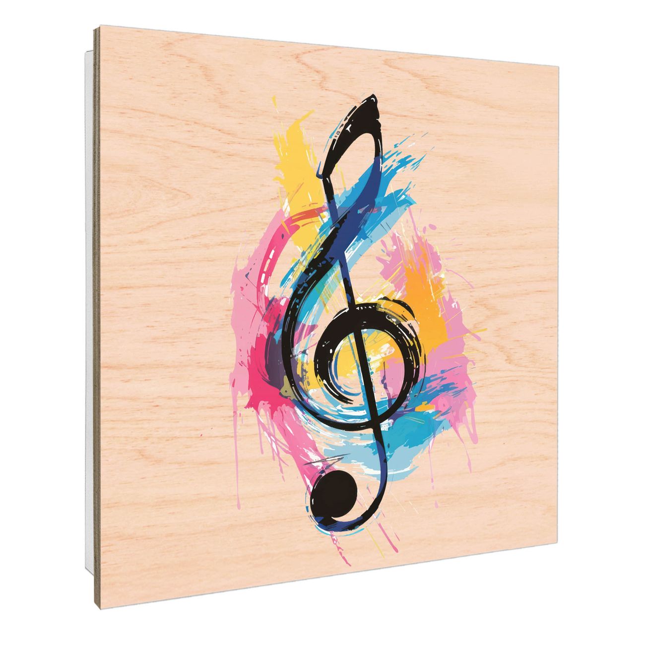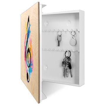 Schlüsselkasten mit Holzfront - Design Schlüsselbox Motiv Bunte Notenpalette