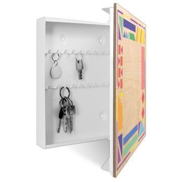 Schlüsselkasten mit Holzfront - Design Schlüsselbox Motiv Bunter Geometrischer Rahmen 2