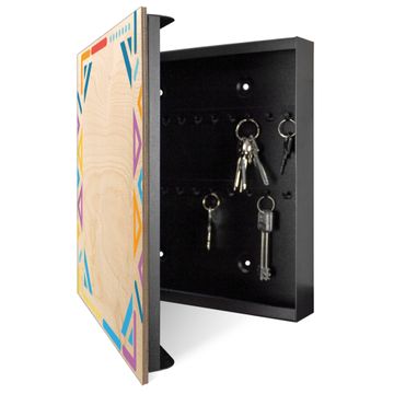 Schlüsselkasten mit Holzfront - Design Schlüsselbox Motiv Bunter Geometrischer Rahmen