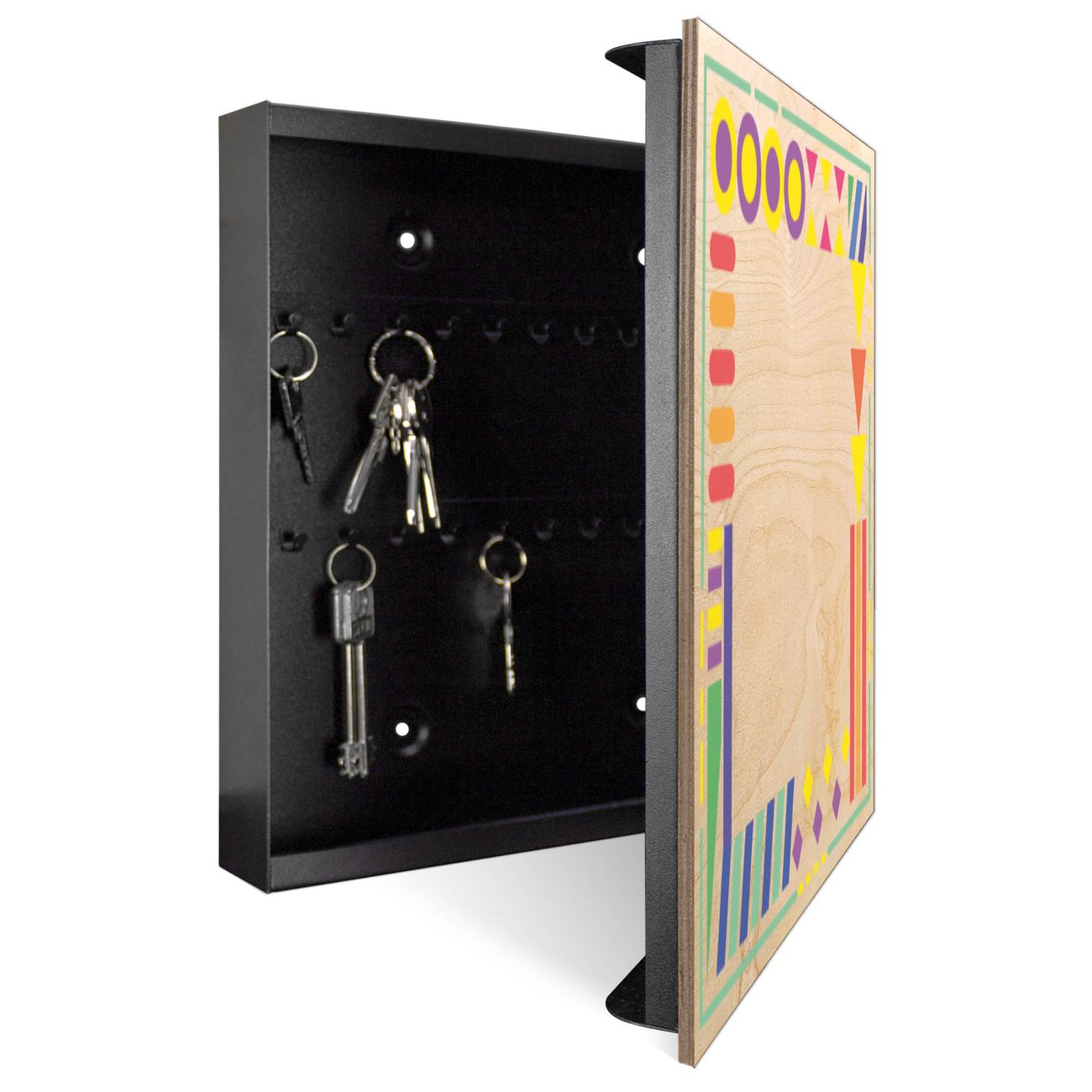 Schlüsselkasten mit Holzfront - Design Schlüsselbox Motiv Bunter Rahmen