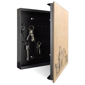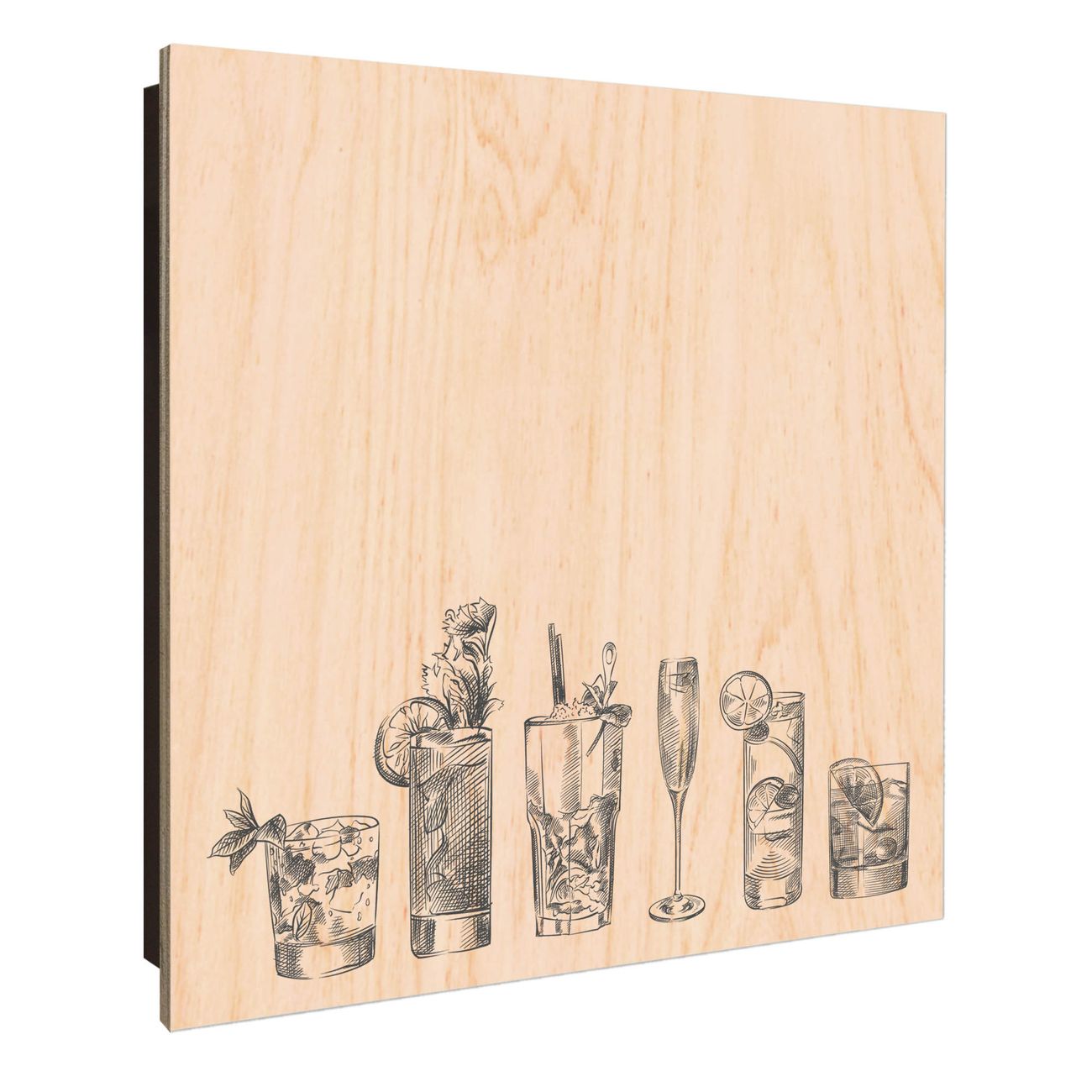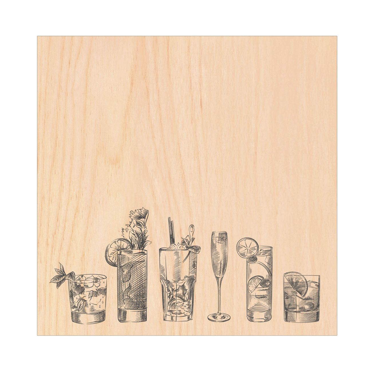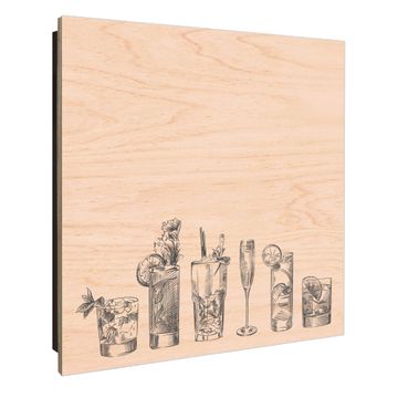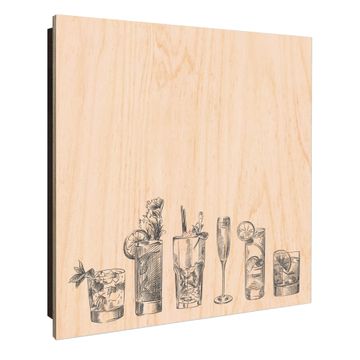 Schlüsselkasten mit Holzfront - Design Schlüsselbox Motiv Cocktail Skizzen