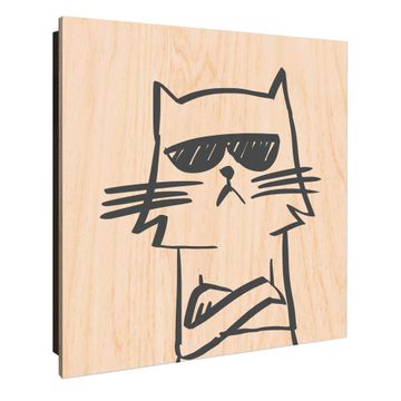 Schlüsselkasten mit Holzfront - Design Schlüsselbox Motiv Coole Katze