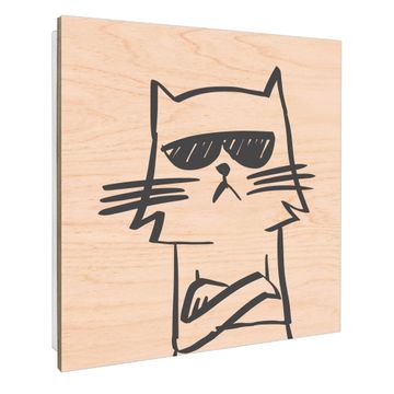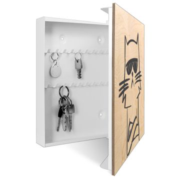 Schlüsselkasten mit Holzfront - Design Schlüsselbox Motiv Coole Katze