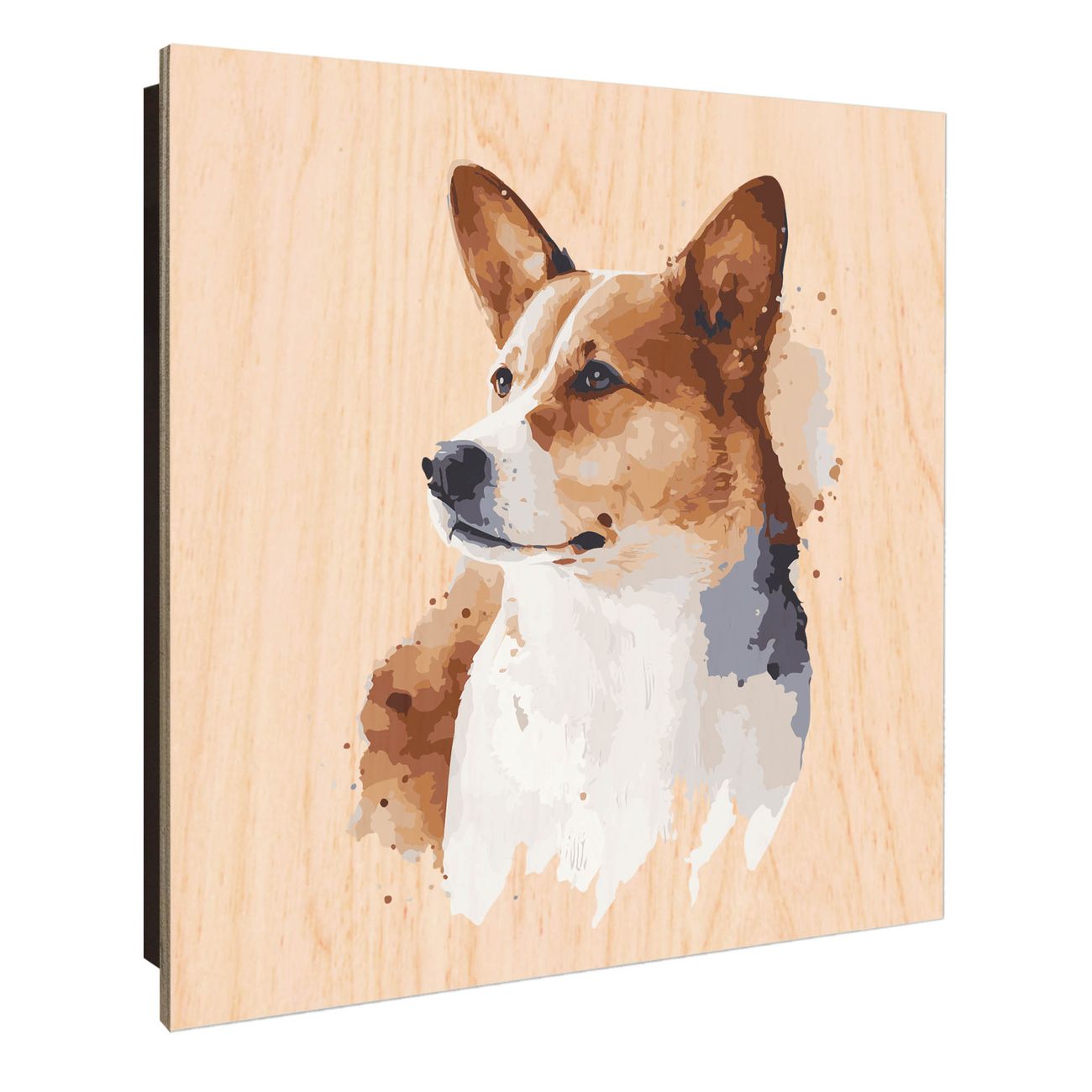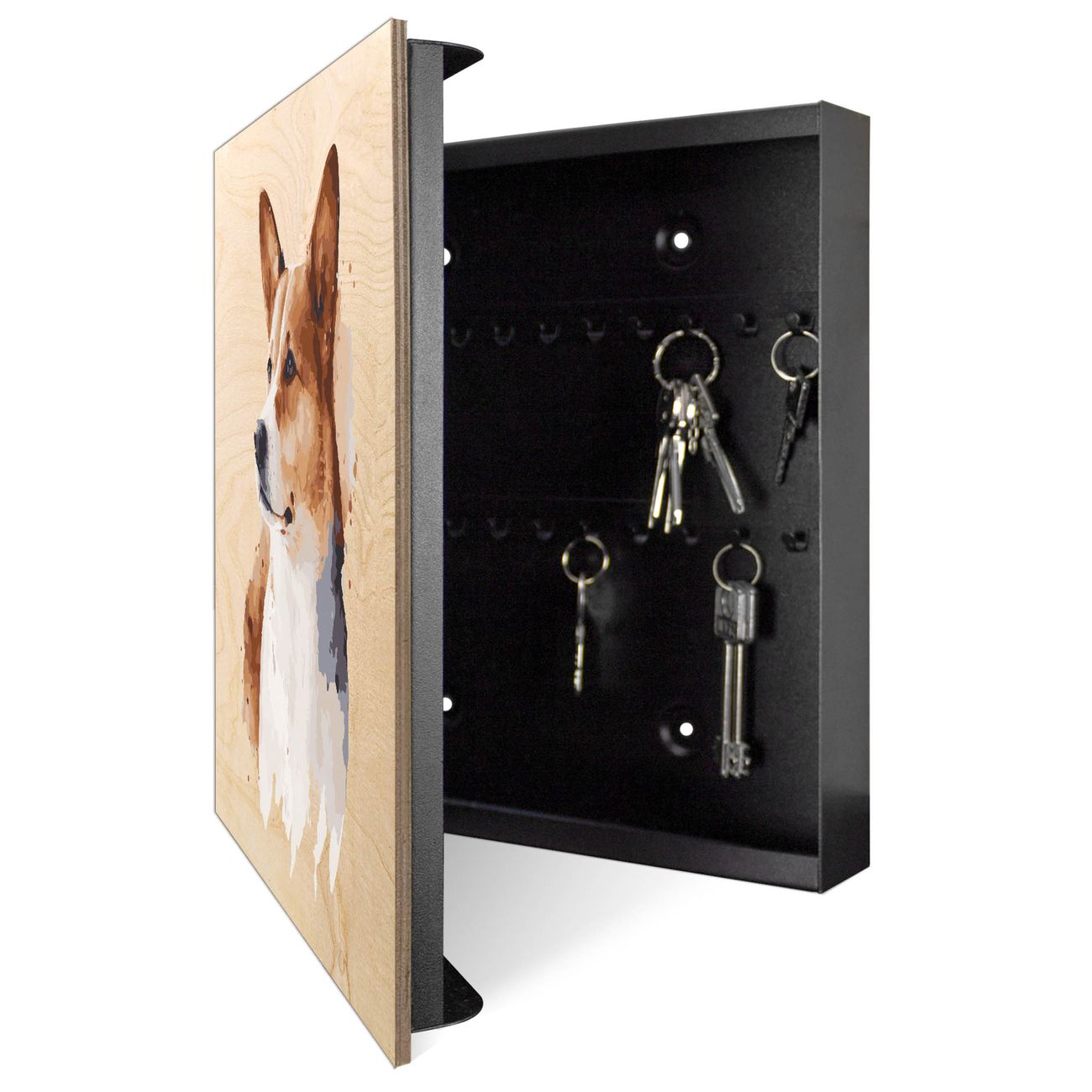 Schlüsselkasten mit Holzfront - Design Schlüsselbox Motiv Corgi Porträt