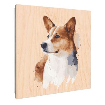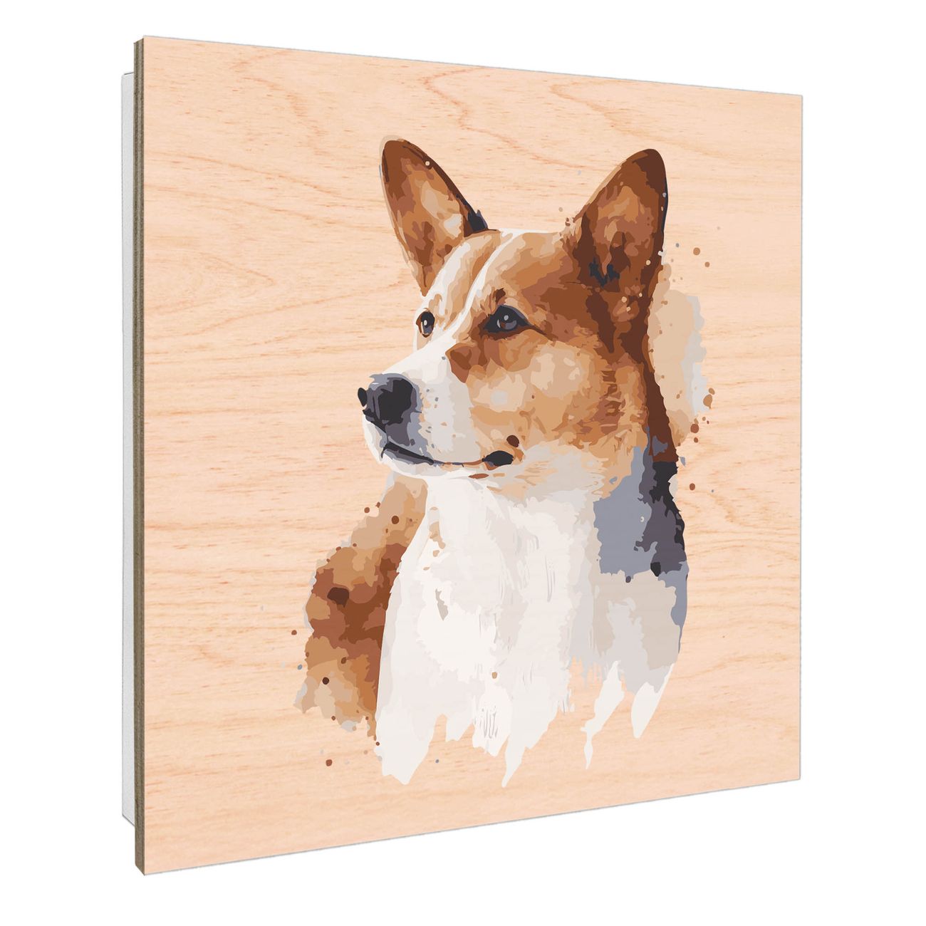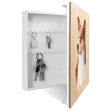 Schlüsselkasten mit Holzfront - Design Schlüsselbox Motiv Corgi Porträt