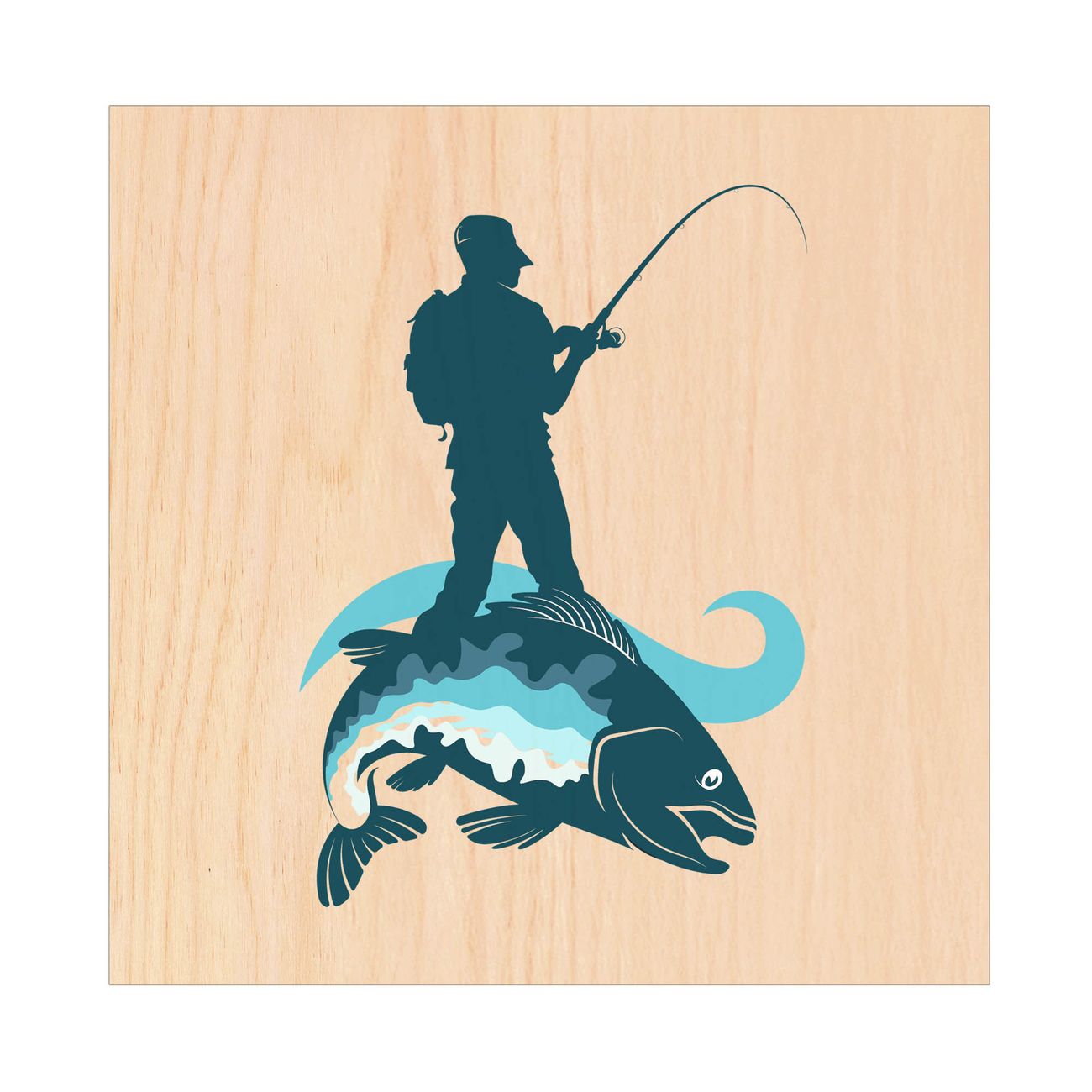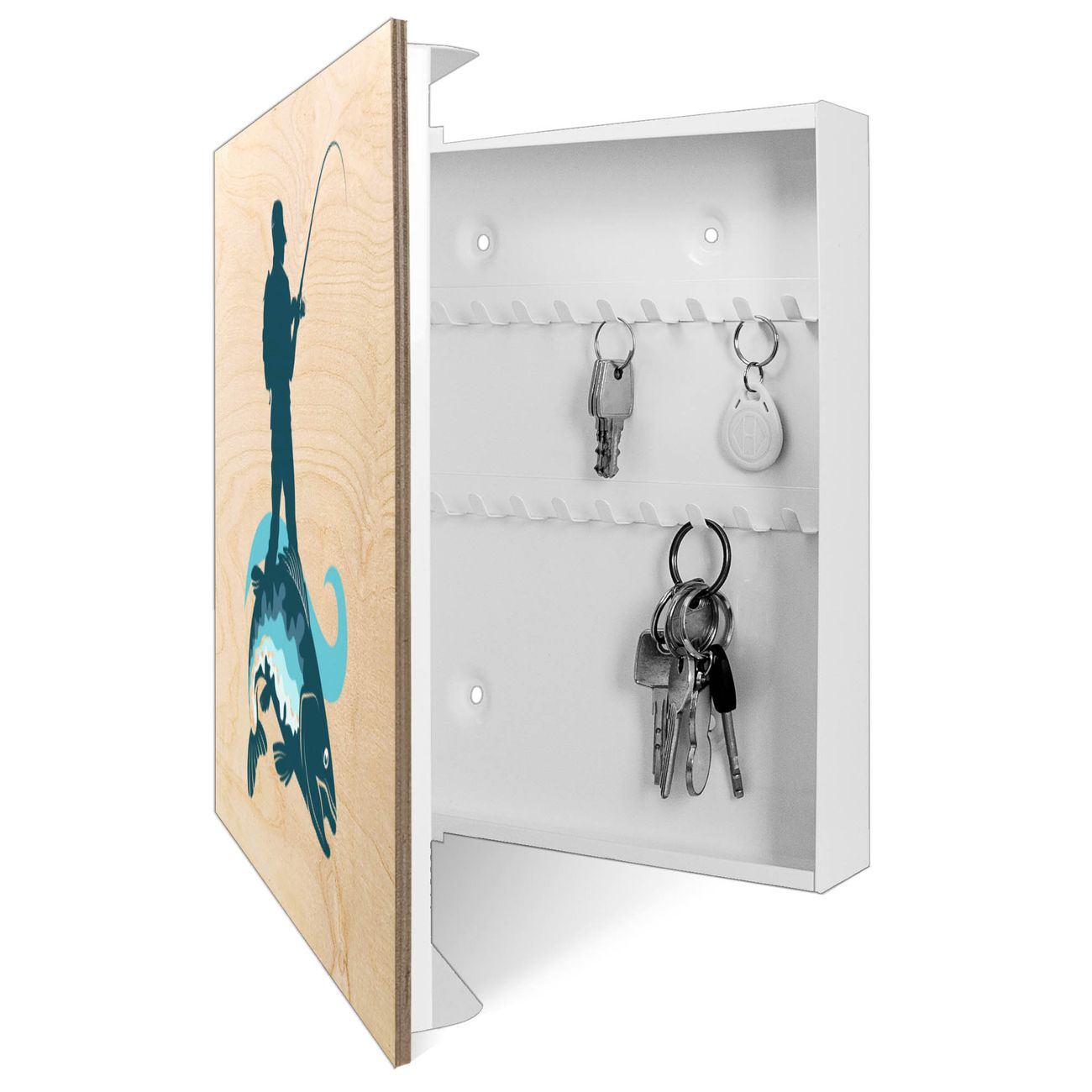 Schlüsselkasten mit Holzfront - Design Schlüsselbox Motiv Der Angler