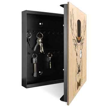Schlüsselkasten mit Holzfront - Design Schlüsselbox Motiv Direktor Hirsch