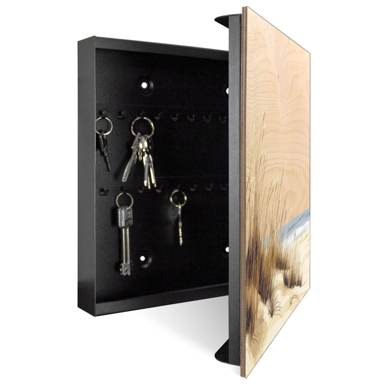 Schlüsselkasten mit Holzfront - Design Schlüsselbox Motiv Dünenlandschaft am Meer