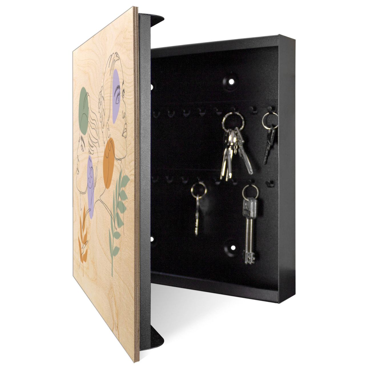 Schlüsselkasten mit Holzfront - Design Schlüsselbox Motiv Duo in Linien