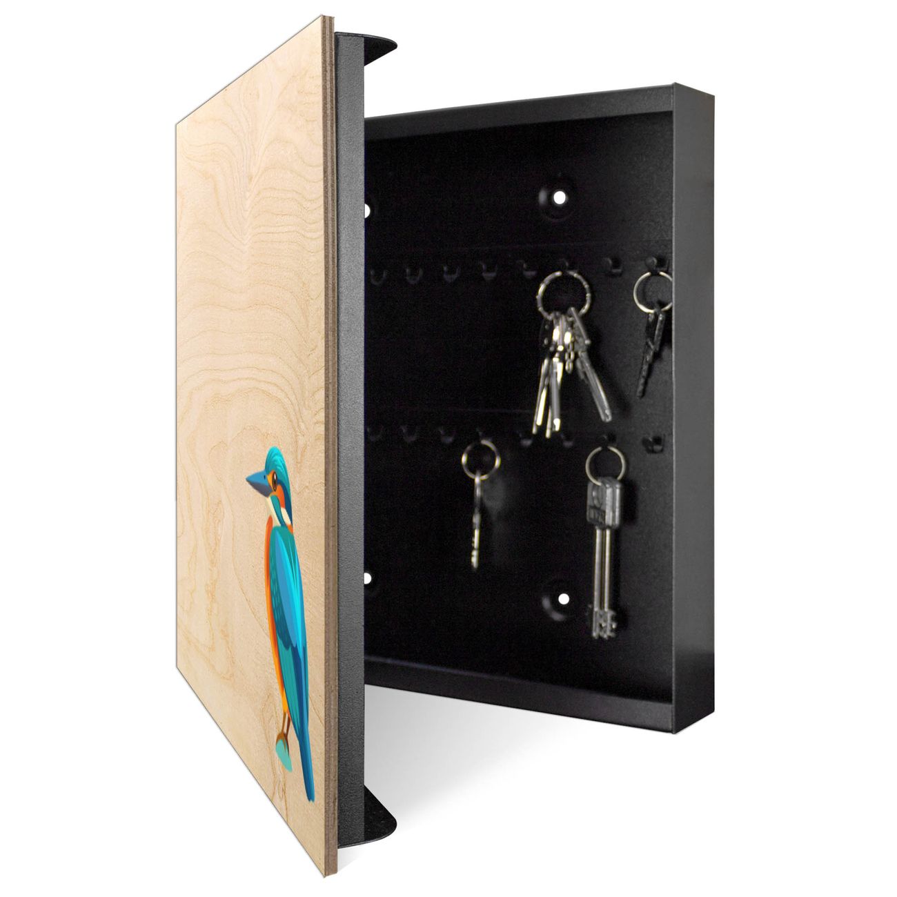 Schlüsselkasten mit Holzfront - Design Schlüsselbox Motiv Eisvogel Illustration
