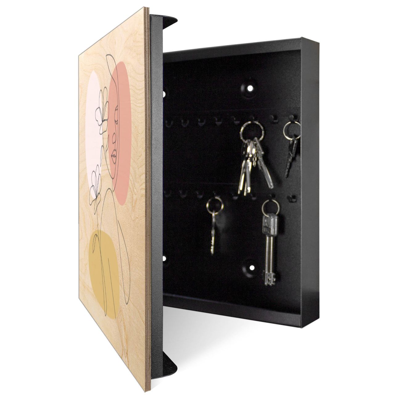 Schlüsselkasten mit Holzfront - Design Schlüsselbox Motiv Elegante Linienblüte