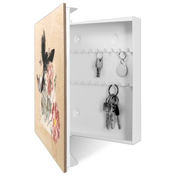 Schlüsselkasten mit Holzfront - Design Schlüsselbox Motiv Elegante Retro-Blütenpracht