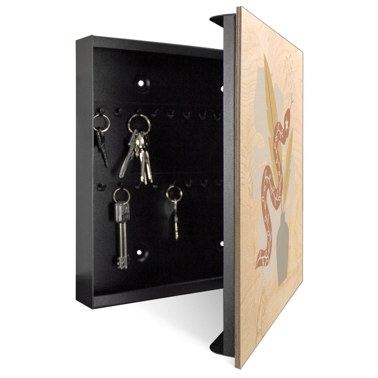 Schlüsselkasten mit Holzfront - Design Schlüsselbox Motiv Elegante Schlange