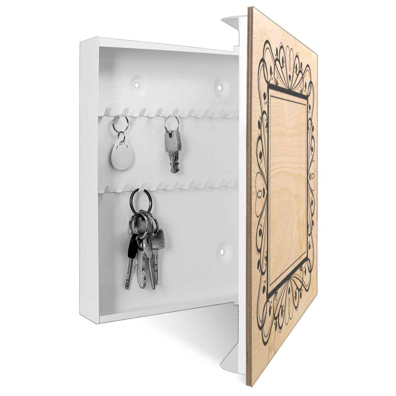 Schlüsselkasten mit Holzfront - Design Schlüsselbox Motiv Elegantes Herz-Ornament