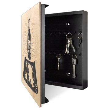 Schlüsselkasten mit Holzfront - Design Schlüsselbox Motiv Entdecker-Laterne