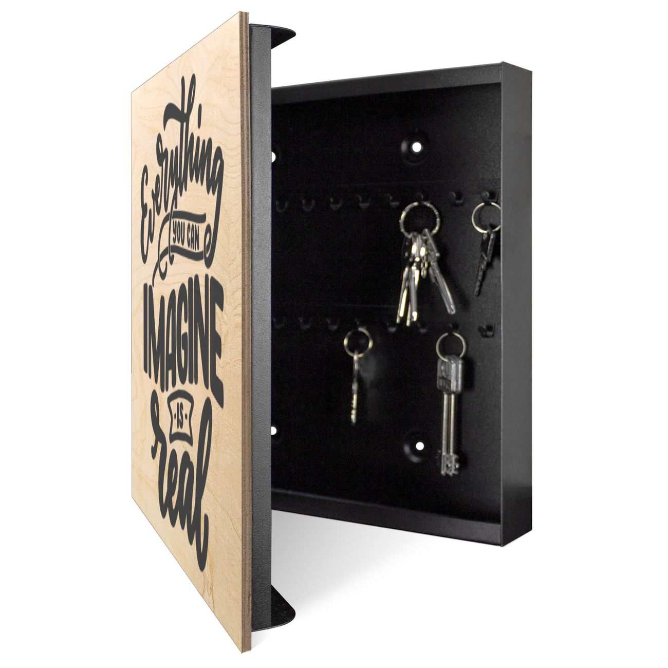 Schlüsselkasten mit Holzfront - Design Schlüsselbox Motiv Everything you can imagine is real 2