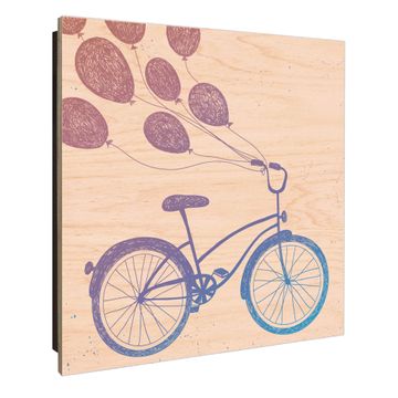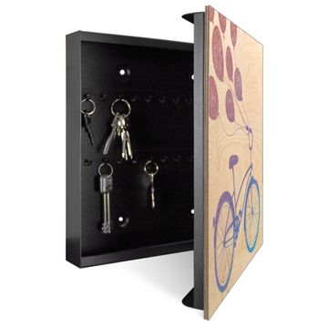 Schlüsselkasten mit Holzfront - Design Schlüsselbox Motiv Fahrrad mit Luftballons