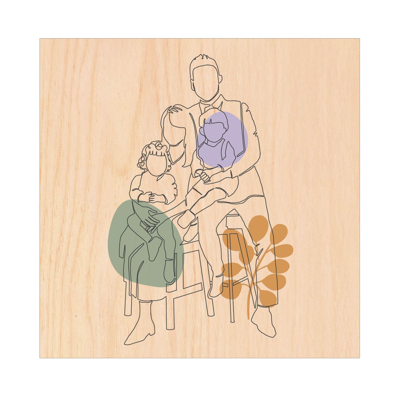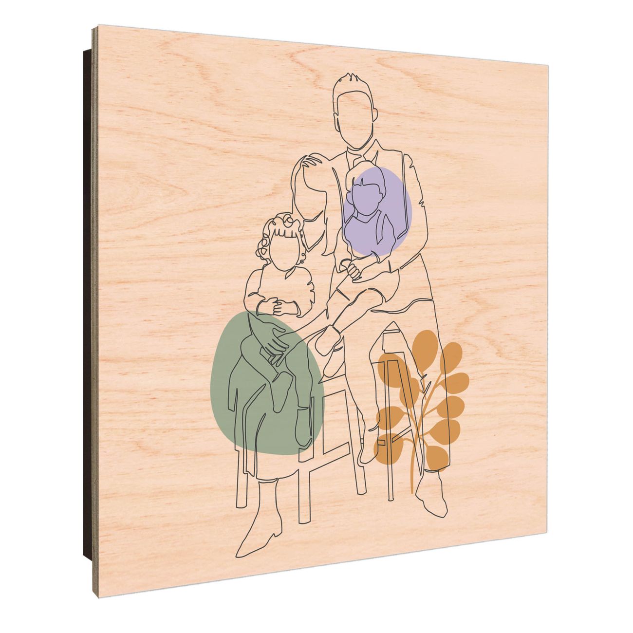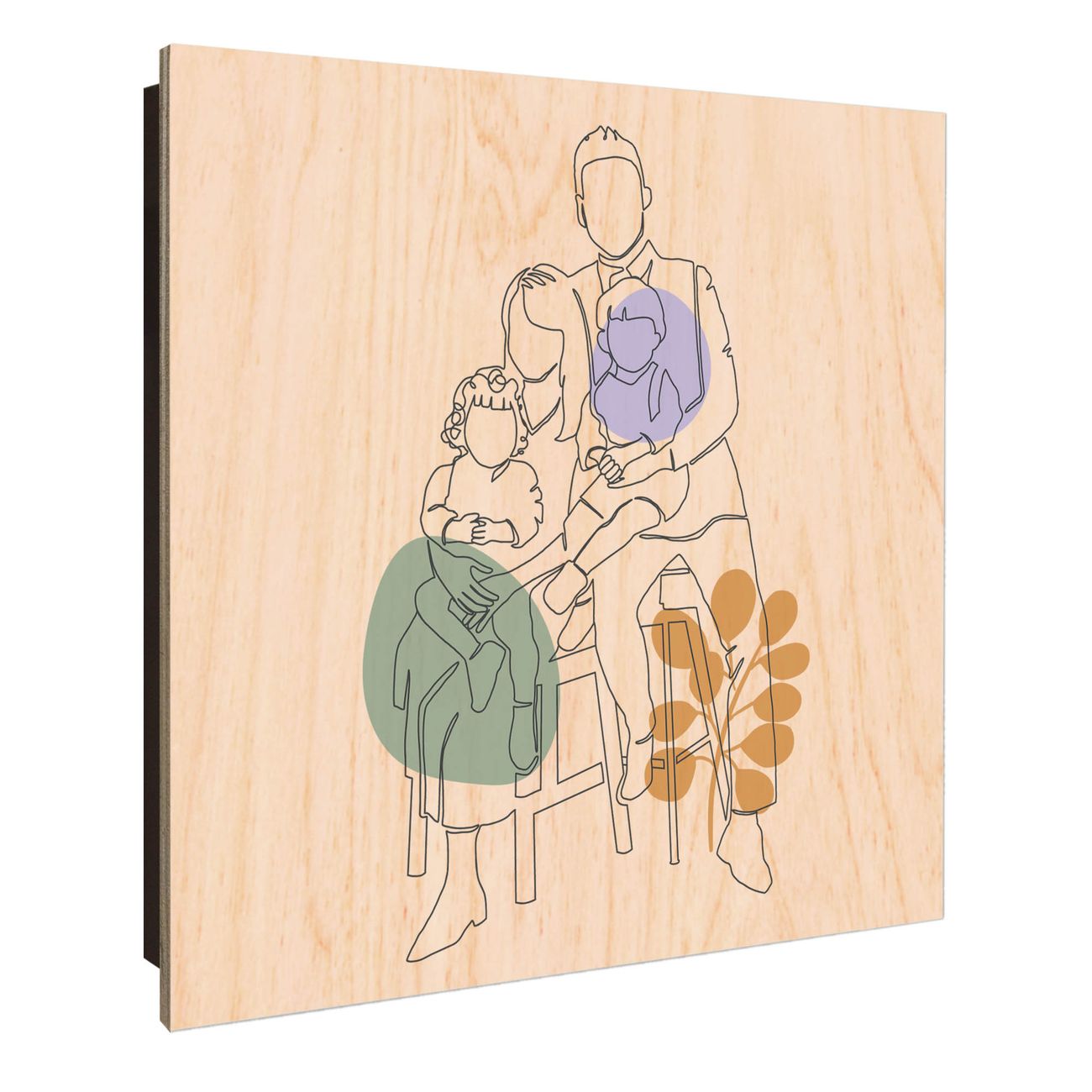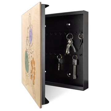Schlüsselkasten mit Holzfront - Design Schlüsselbox Motiv Familienglück Illustration