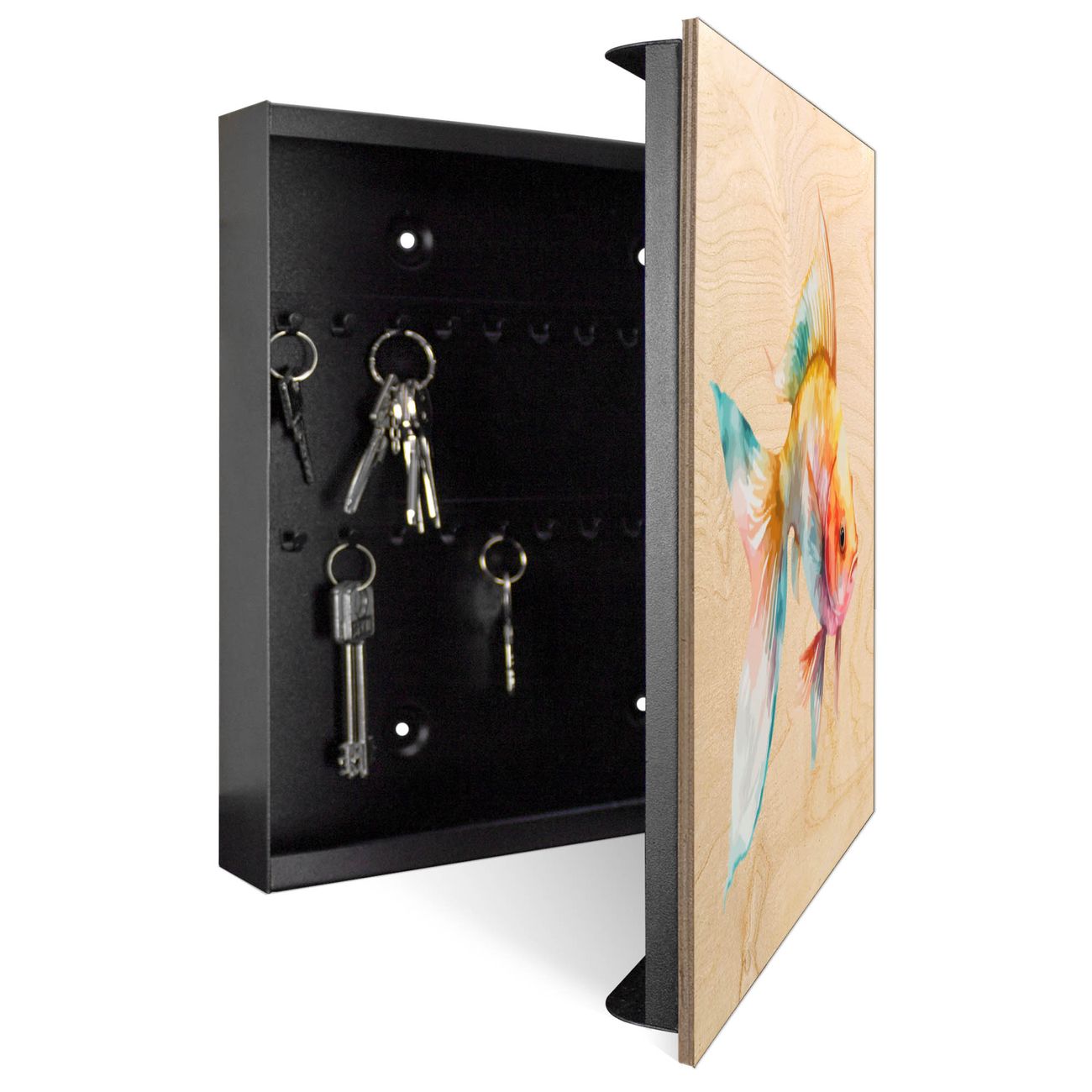 Schlüsselkasten mit Holzfront - Design Schlüsselbox Motiv Farbenfroher Goldfisch