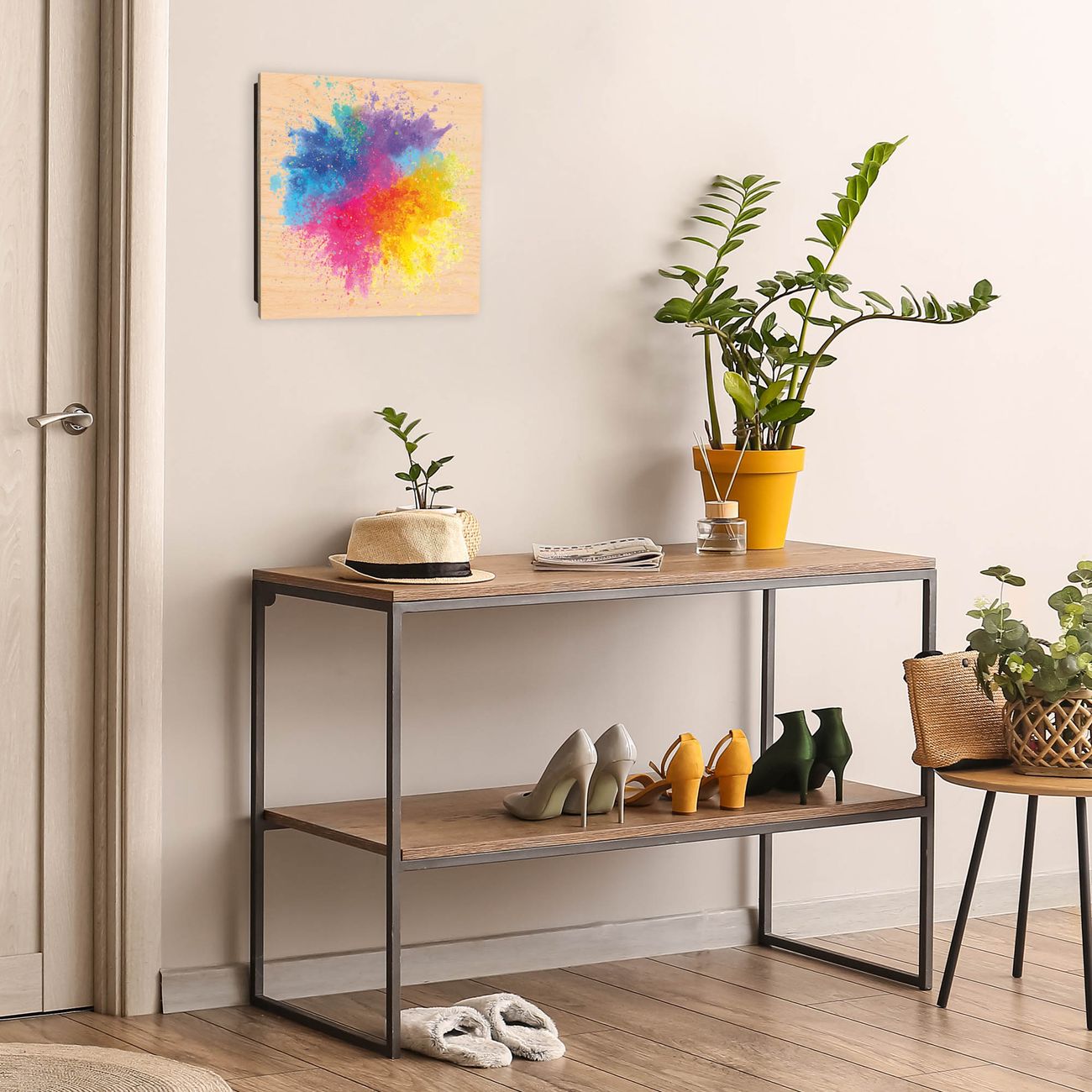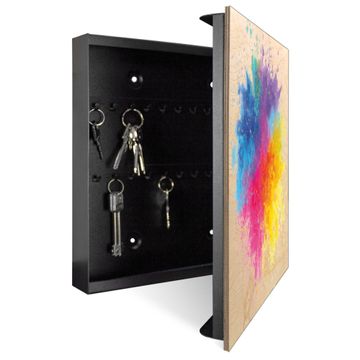 Schlüsselkasten mit Holzfront - Design Schlüsselbox Motiv Farbexplosion 2