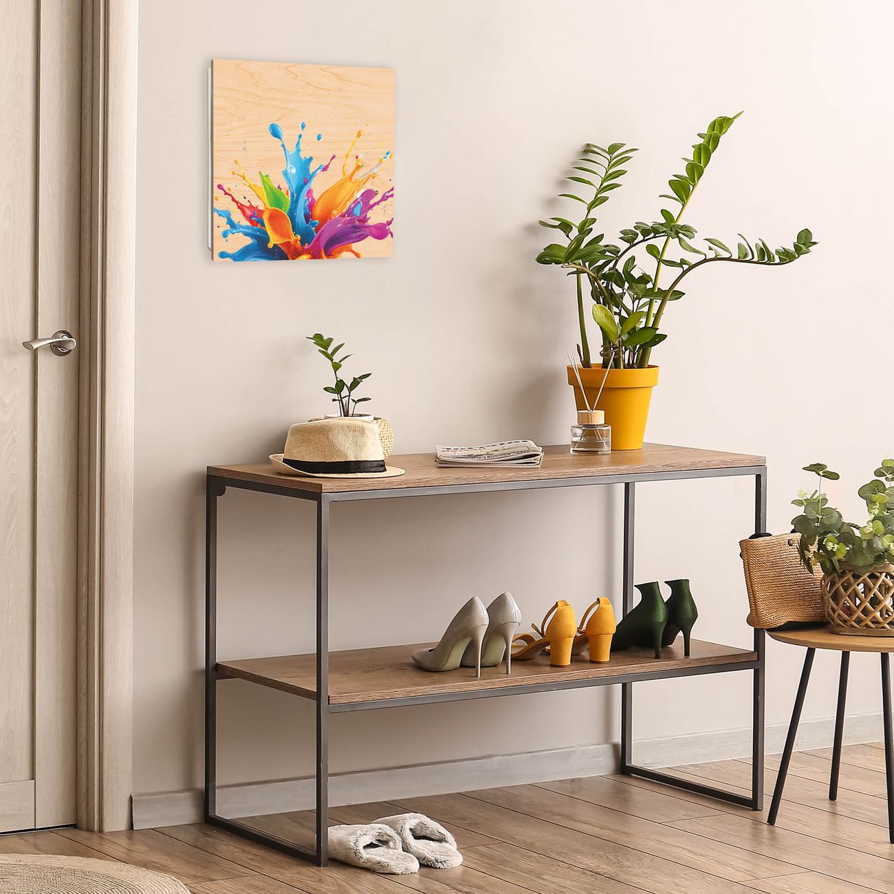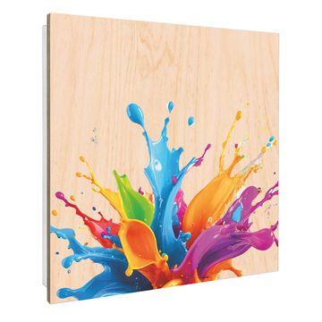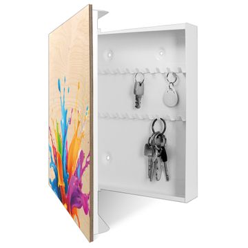 Schlüsselkasten mit Holzfront - Design Schlüsselbox Motiv Farbspritzer-Explosion