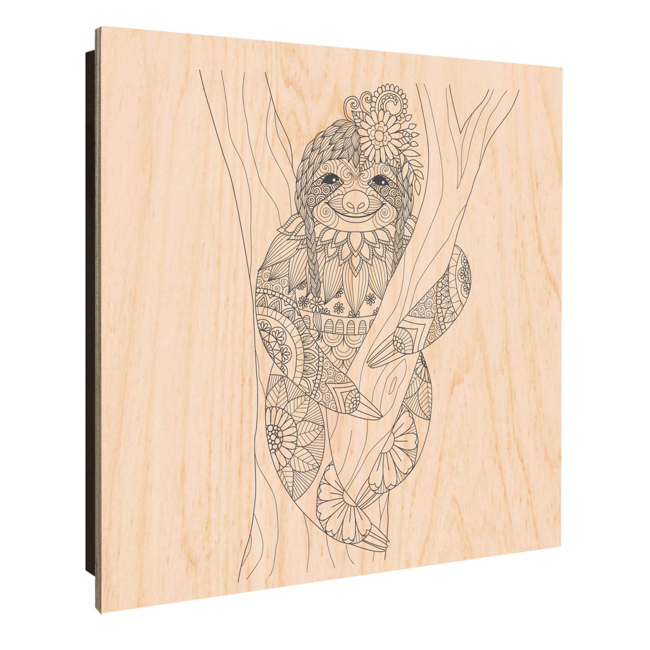 Schlüsselkasten mit Holzfront - Design Schlüsselbox Motiv Faultier gezeichnet 2