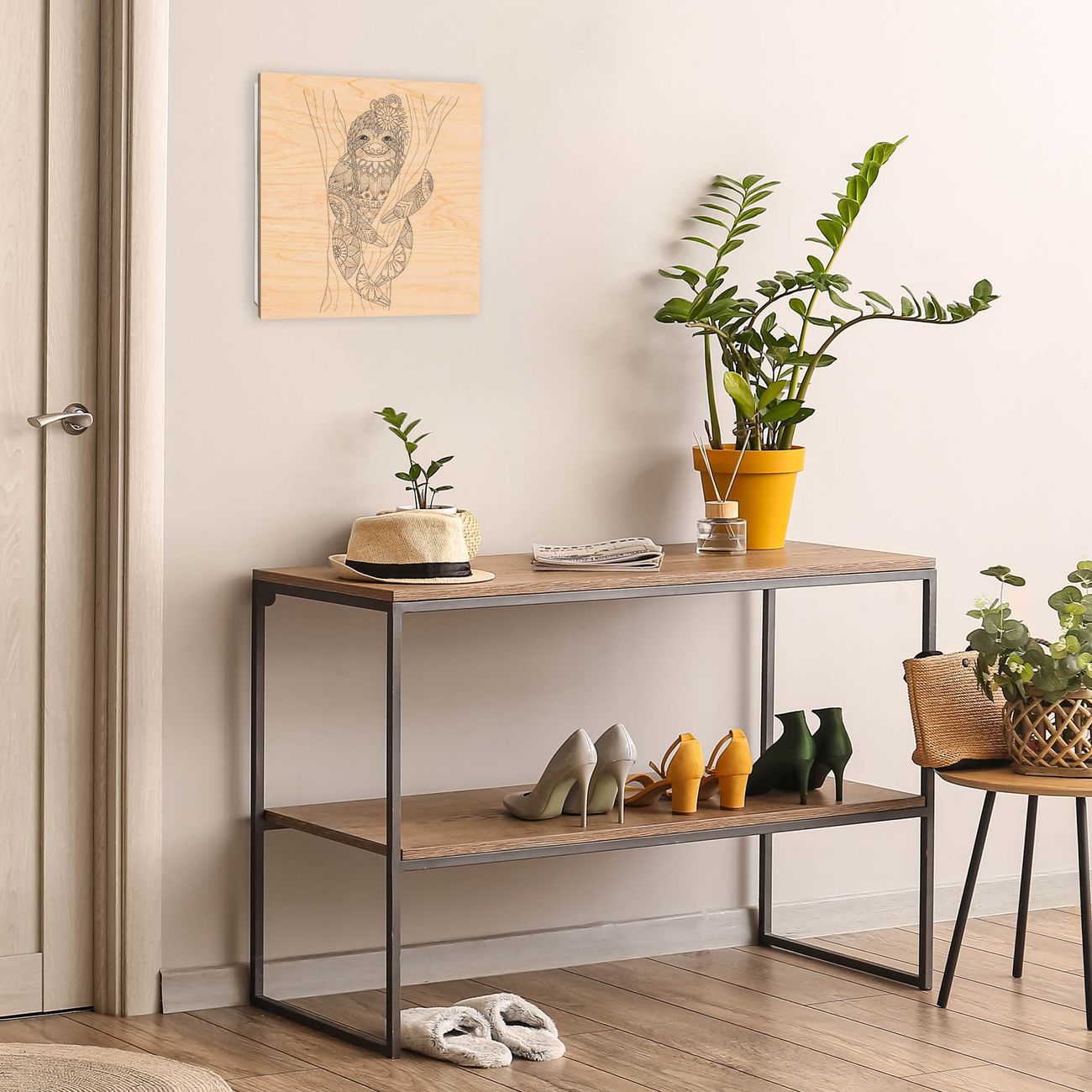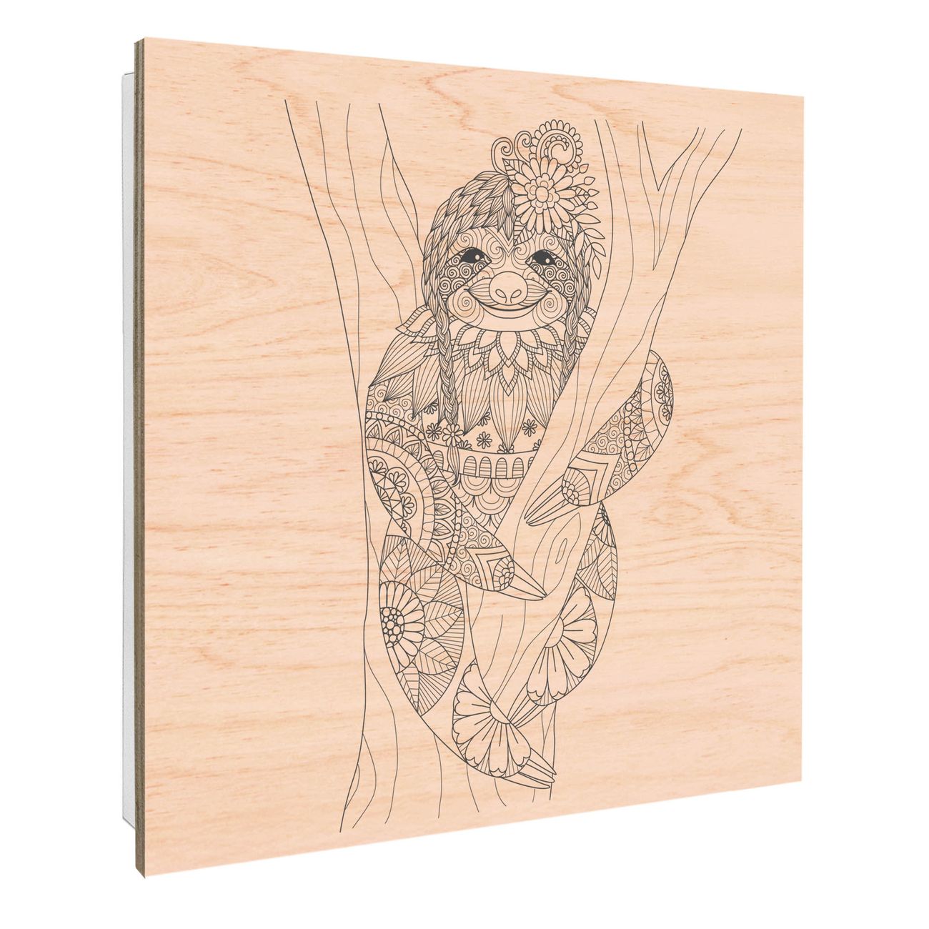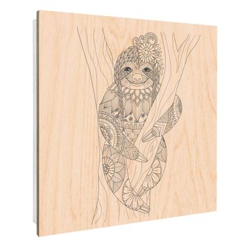 Schlüsselkasten mit Holzfront - Design Schlüsselbox Motiv Faultier gezeichnet 2
