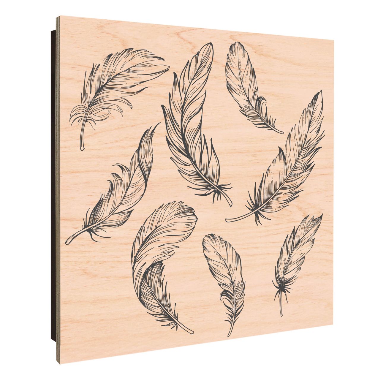 Schlüsselkasten mit Holzfront - Design Schlüsselbox Motiv Federn 2