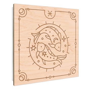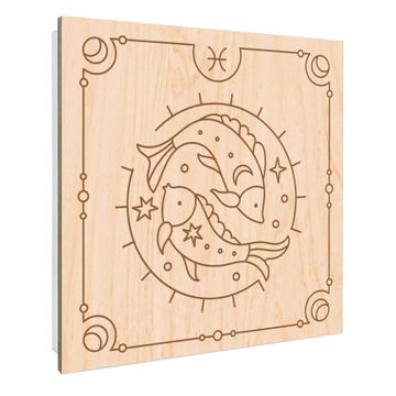 Schlüsselkasten mit Holzfront - Design Schlüsselbox Motiv Fische Sternzeichen Illustration