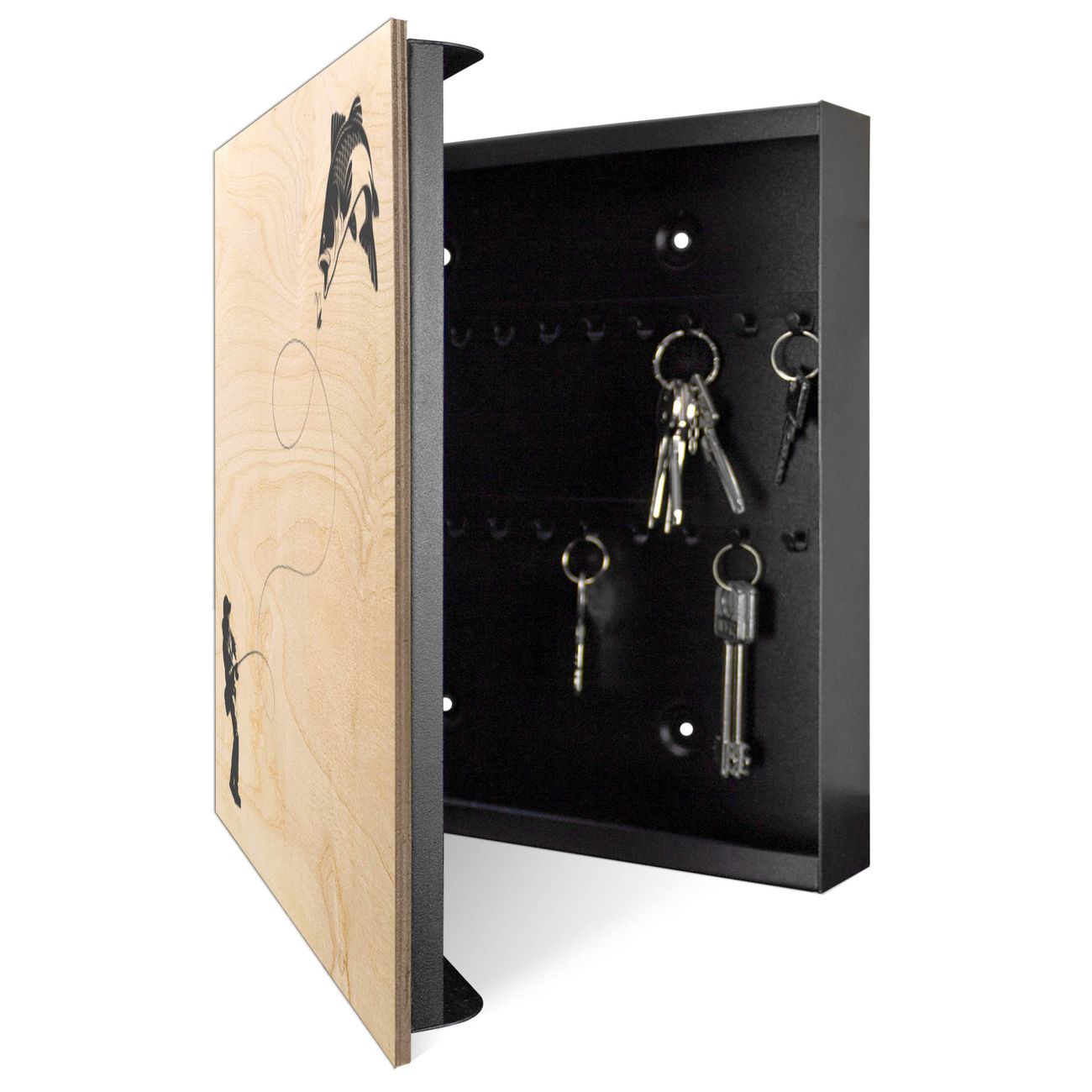 Schlüsselkasten mit Holzfront - Design Schlüsselbox Motiv Fischerfreude