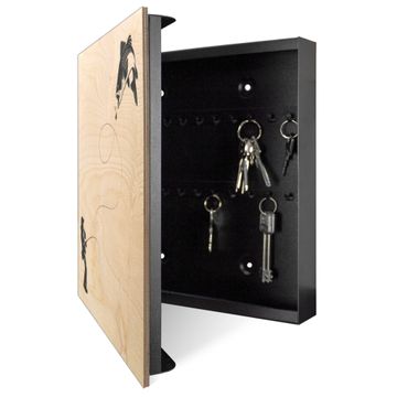 Bringe Ordnung und Eleganz in deinen Eingangsbereich mit dem banjado Schlüsselkasten Motiv Motiv Fischerfreude. Die moderne Schlüsselbox kombiniert funktionales Design mit hochwertiger Verarbeitung und wird so zu einem echten Hingucker in Flur, Büro oder Ferienwohnung. ✅ Stilvolle Schlüsselaufbewahrung mit moderner Holzfront im Motiv Motiv Fischerfreude Der Design-Schlüsselkasten Motiv Motiv Fischerfreude bietet Platz für bis zu 50 Schlüssel, die auf 5 stabilen Reihen mit je 10 Haken übersichtlich verstaut werden. Mit seinen kompakten Maßen von 30 x 30 x 5 cm passt die Schlüsselbox perfekt auch in kleinere Räume. Der schwarz lackierte Korpus mit dem Scharnier auf der linken Seite harmoniert mit der bedruckten Holzfront und fügt sich nahtlos in jedes Wohnambiente ein. Ob als Schlüsselorganizer für Zuhause oder als praktische Lösung für Büros, Praxen und Gewerbe - der banjado Schlüsselkasten sorgt für Ordnung und Übersicht. Durch die klare Strukturierung der Haken lassen sich auch viele Schlüssel problemlos verwalten. Die Schlüsselbox Motiv Motiv Fischerfreude zur Wandmontage wird inklusive Befestigungsmaterial geliefert und ist schnell angebracht. So hast du deine Schlüssel jederzeit griffbereit und zugleich stilvoll verstaut. Mit diesem banjado Schlüsselkasten Motiv Motiv Fischerfreude kombinierst du praktische Aufbewahrung mit stilvollem Wohndesign. Ob privat oder geschäftlich - die Schlüsselbox sorgt für mehr Ordnung, Übersicht und ein wohnliches Ambiente.Vorteile im Überblick