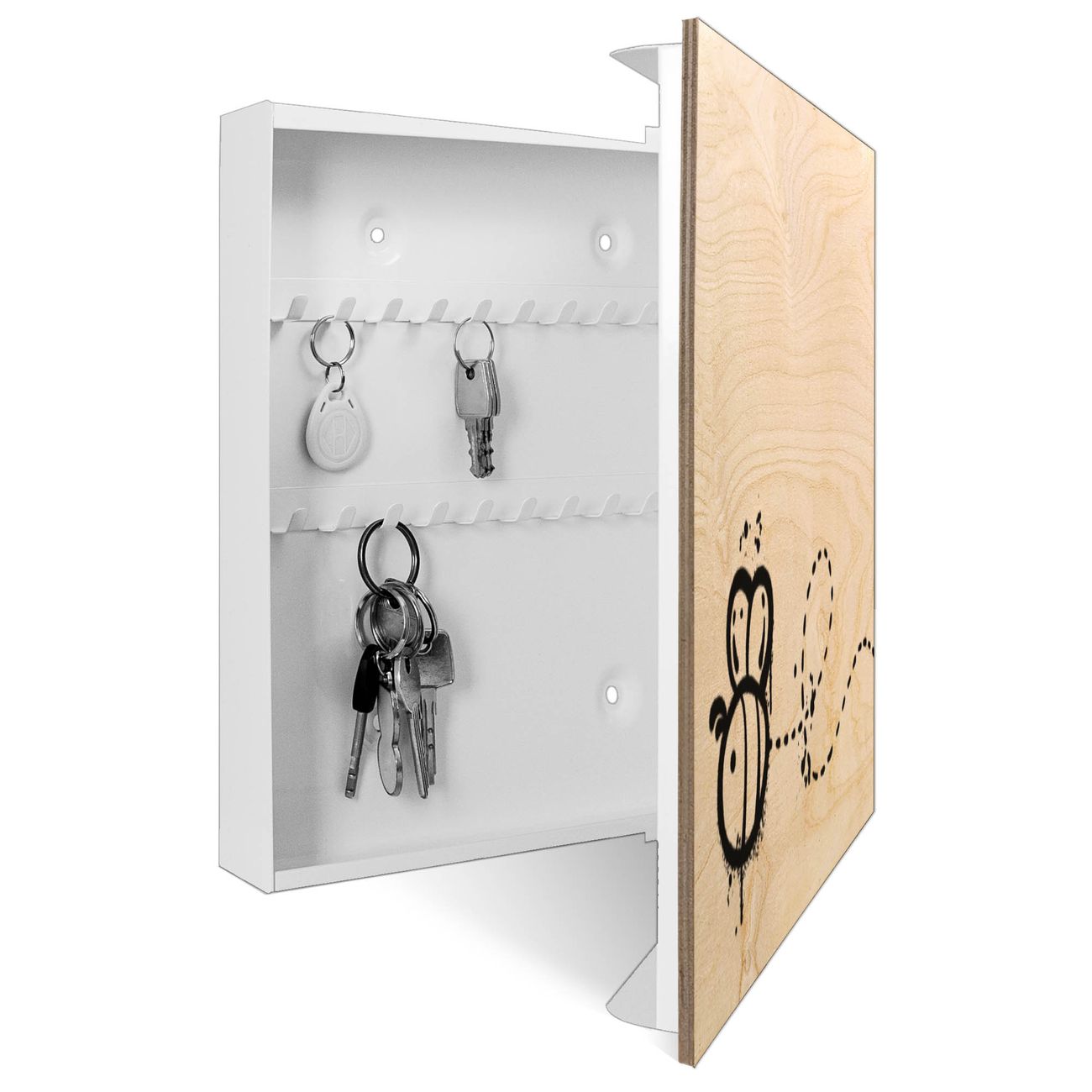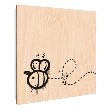 Schlüsselkasten mit Holzfront - Design Schlüsselbox Motiv Fliegende Biene Graffiti